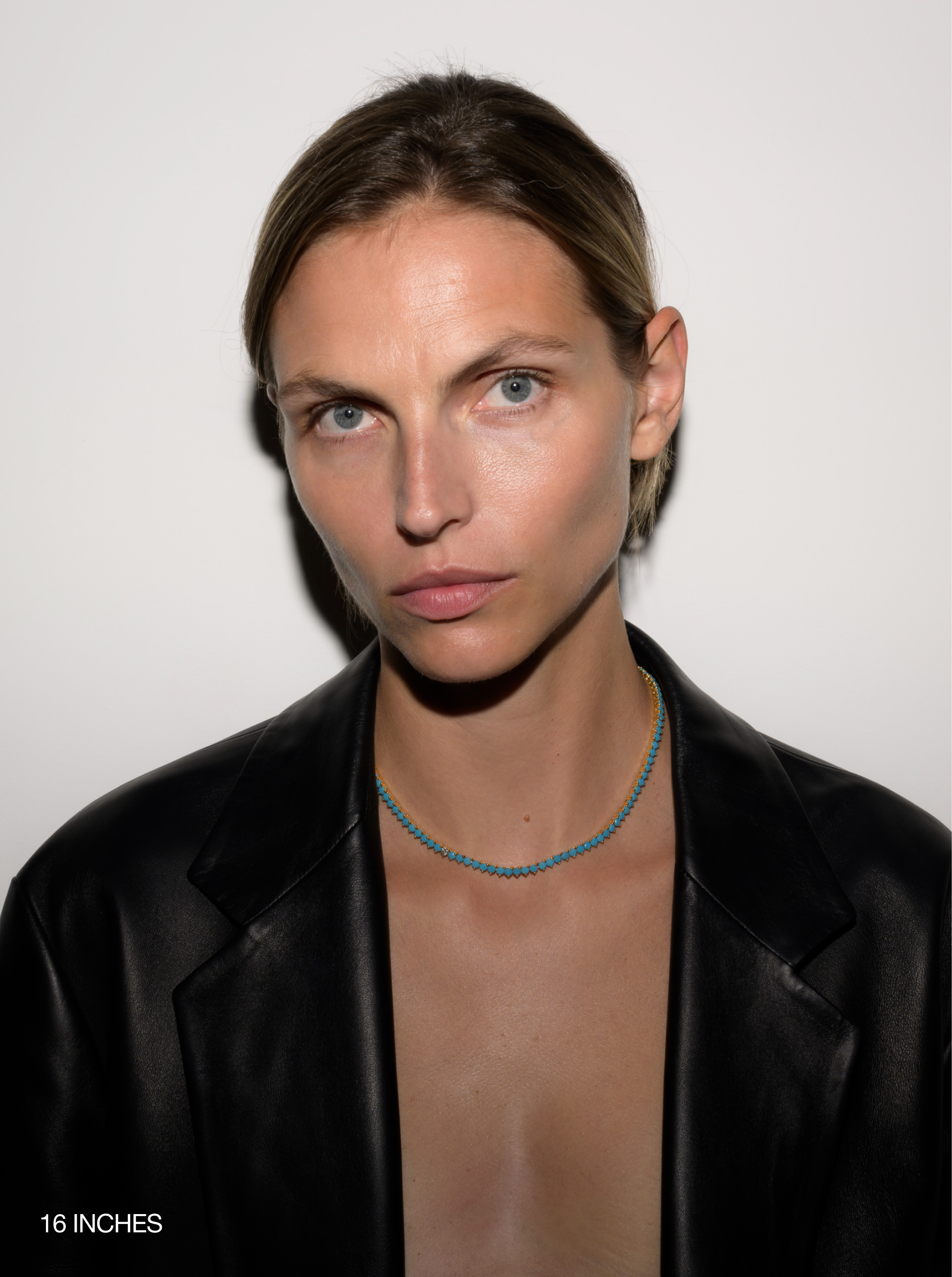 This Bennington Rivière Necklace features vibrant 3.5MM round nano turquoise stones and is accented with a single lab-grown diamond as a signature Dorsey detail. Set in 18K gold vermeil with a classic 3-prong setting, Bennington delivers timeless sophistication through rich color.