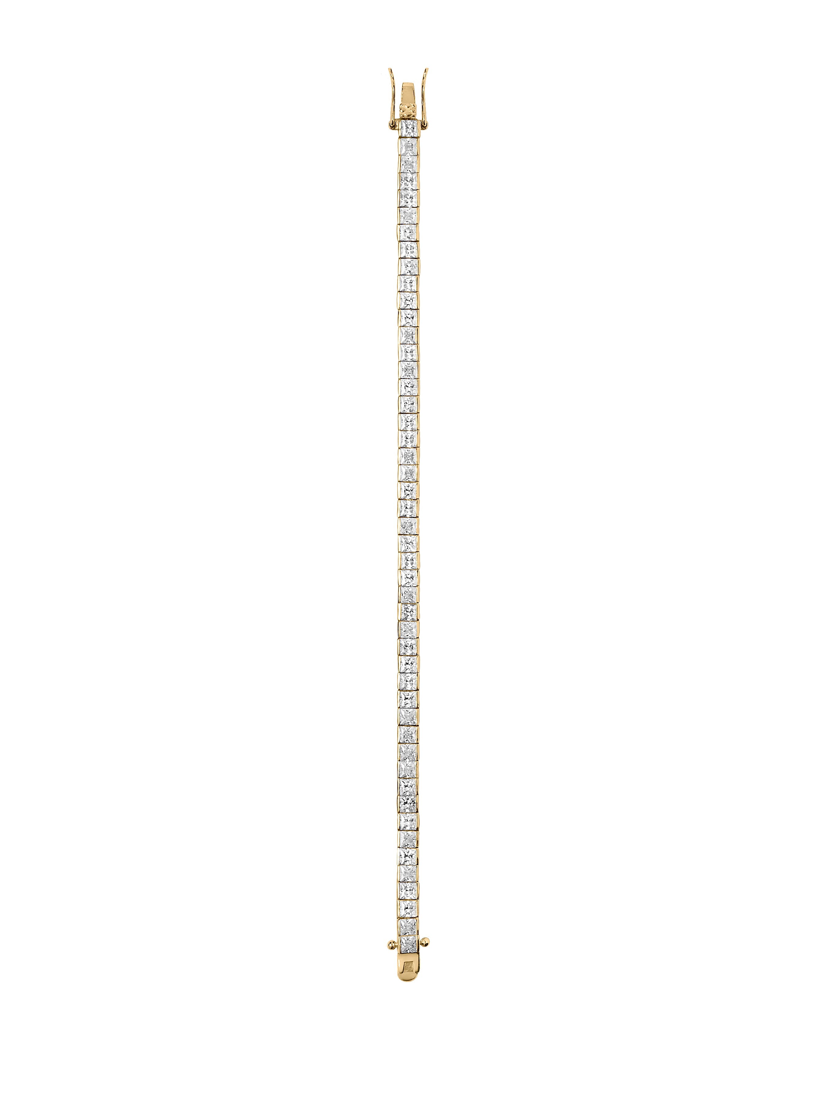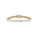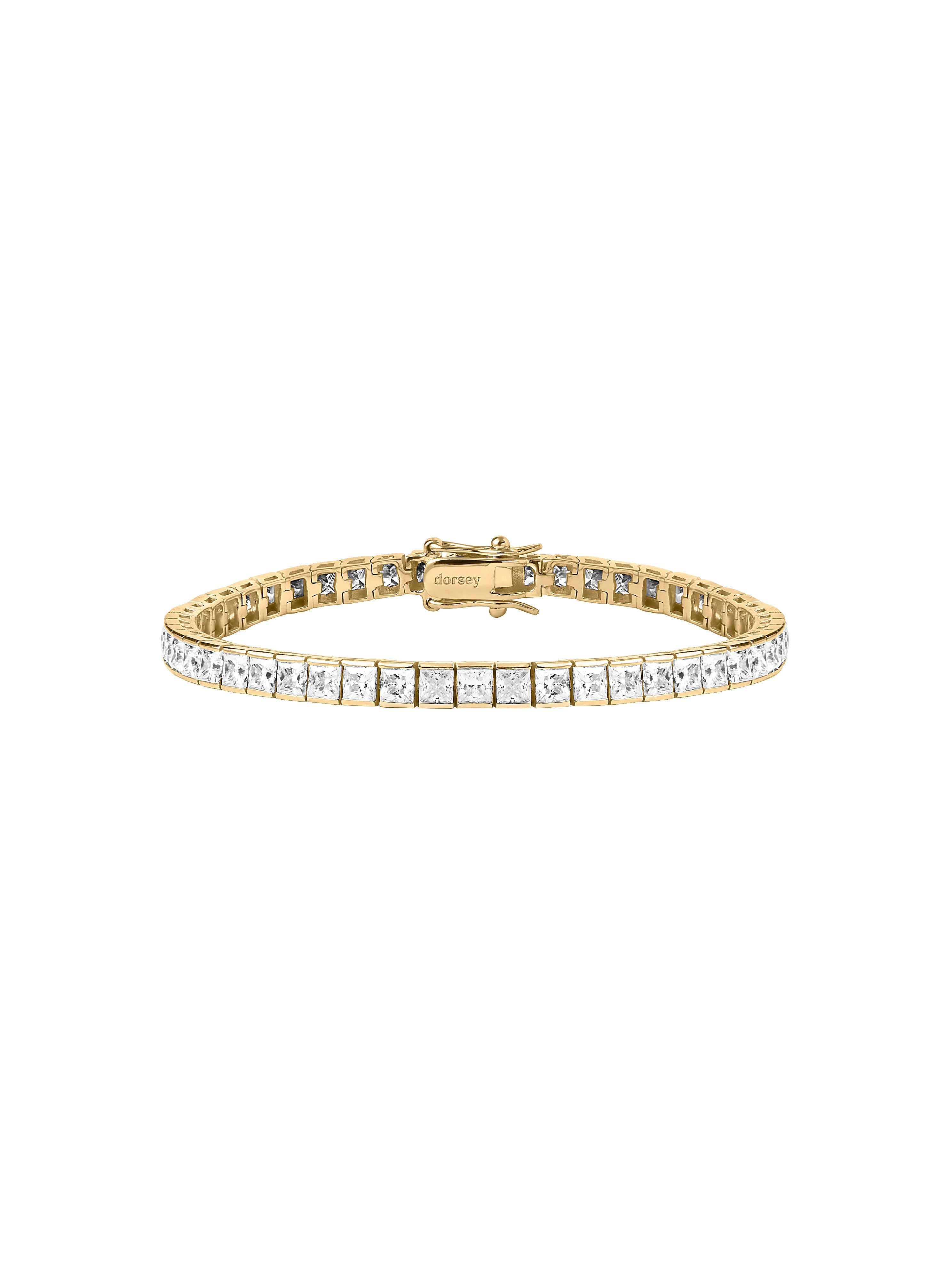 Classic and refined, the Dorsey Princess-Cut Rivière Bracelet channels old-world elegance with a modern point of view. Crafted with individually set, princess-cut lab-grown white moissanite gemstones, each stone is framed in 18k gold vermeil. This signature tennis bracelet is designed for everyday wear and secured with a box clasp and double safety hooks for added security.