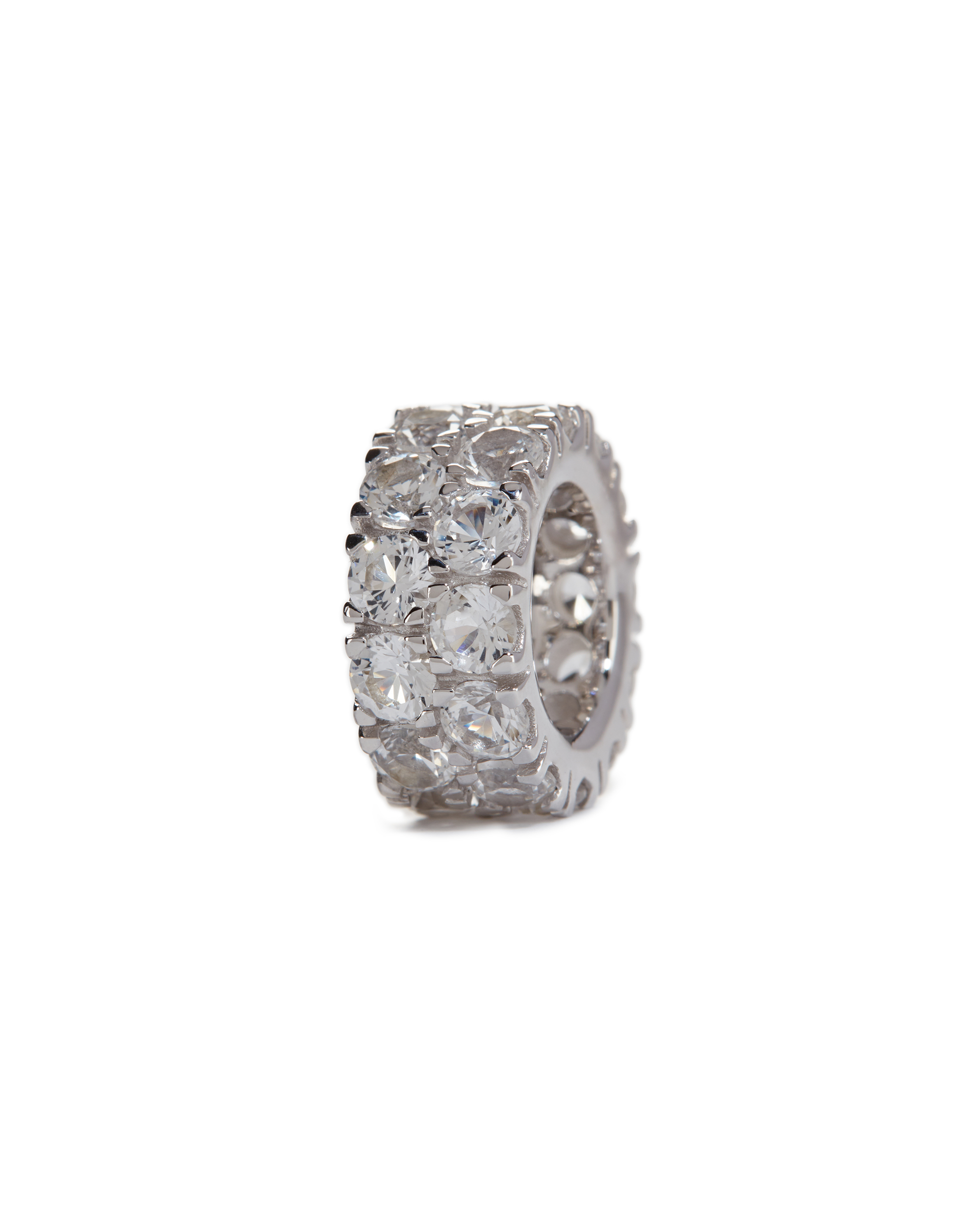 A two-row pavé pendant in sterling silver and lab-grown white sapphire that slips seamlessly onto your rivière necklace.