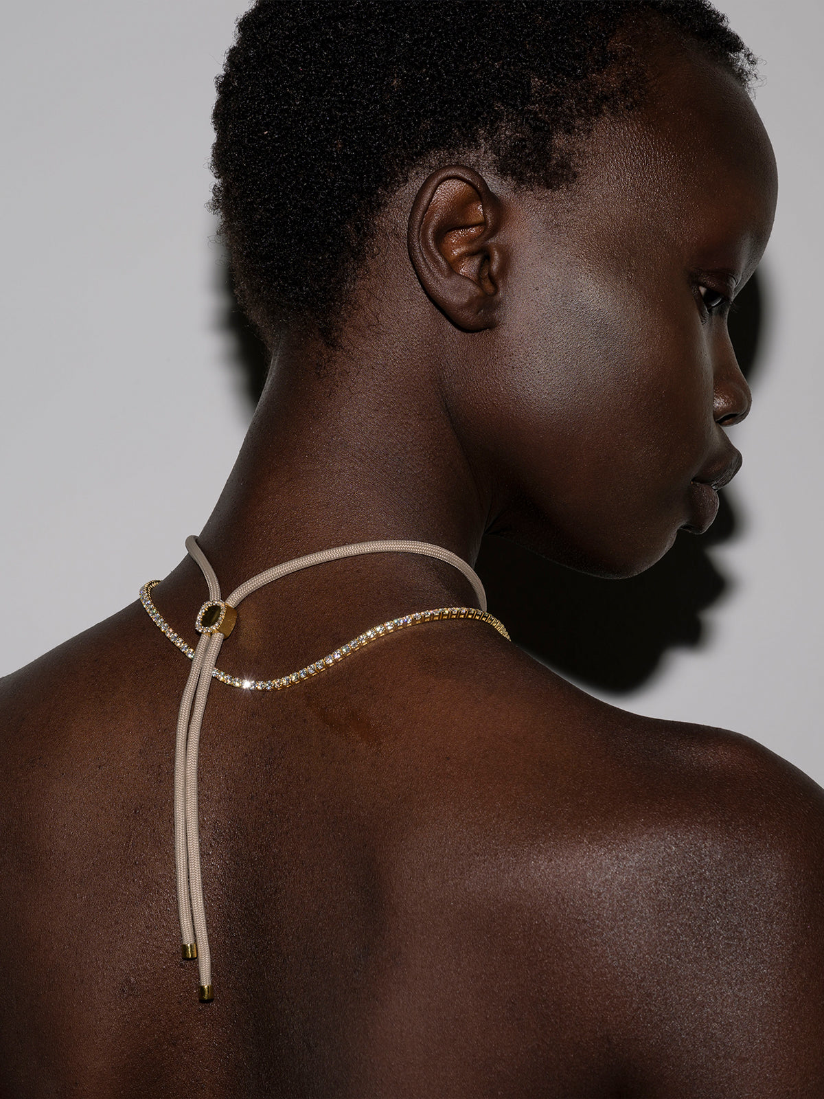 Dorsey - YVES LAB WHITE SAPPHIRE PARACORD NECKLACE, BEIGE