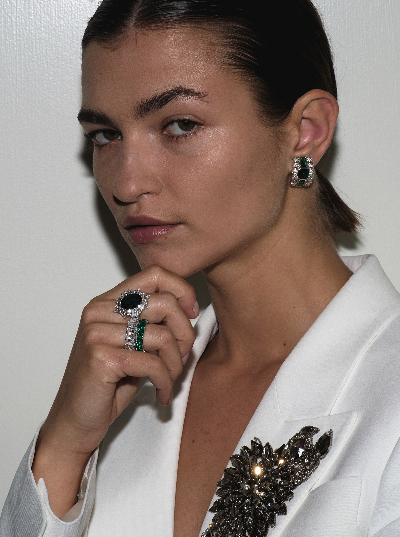 • Center stone: Lab-grown emerald