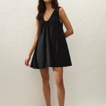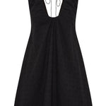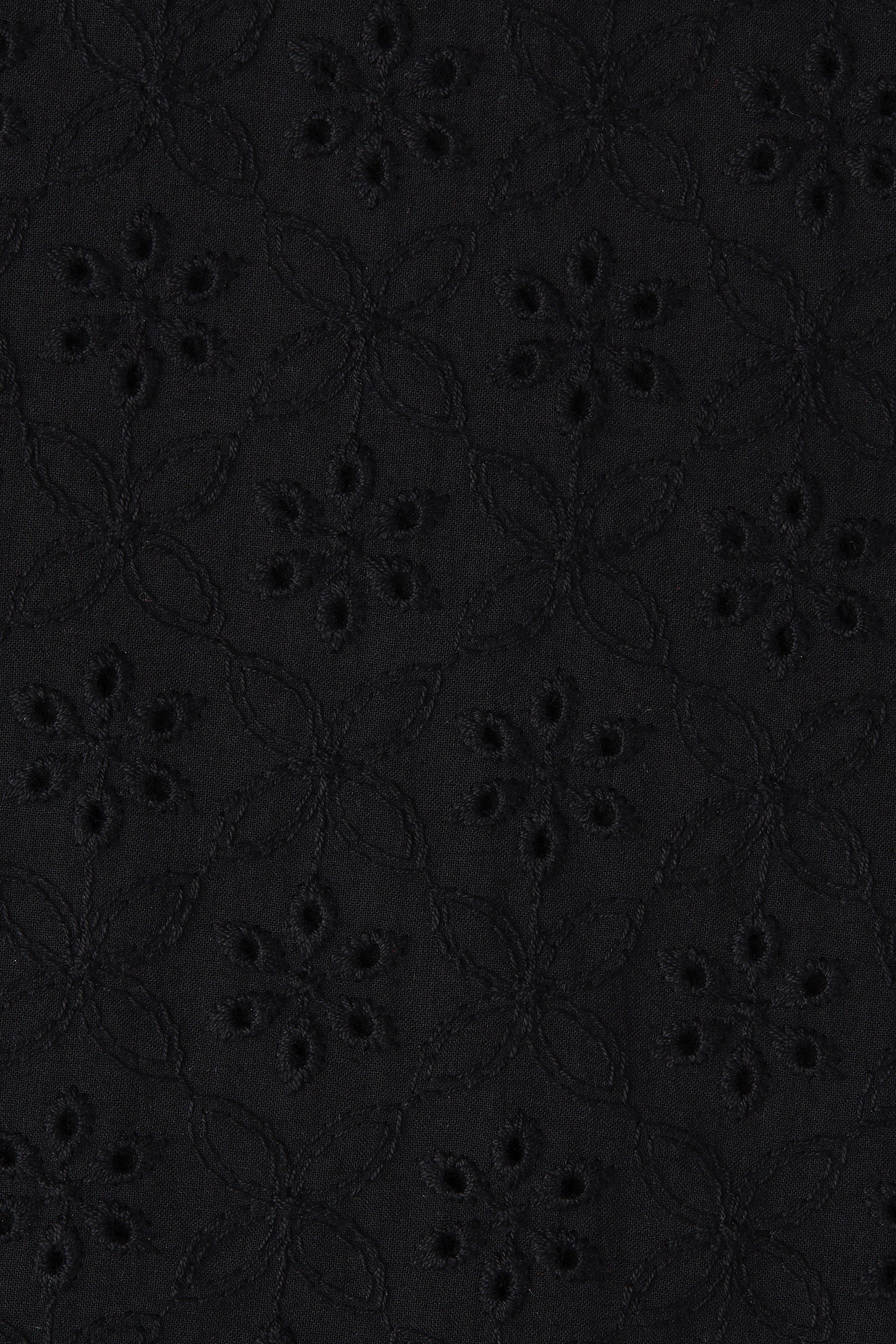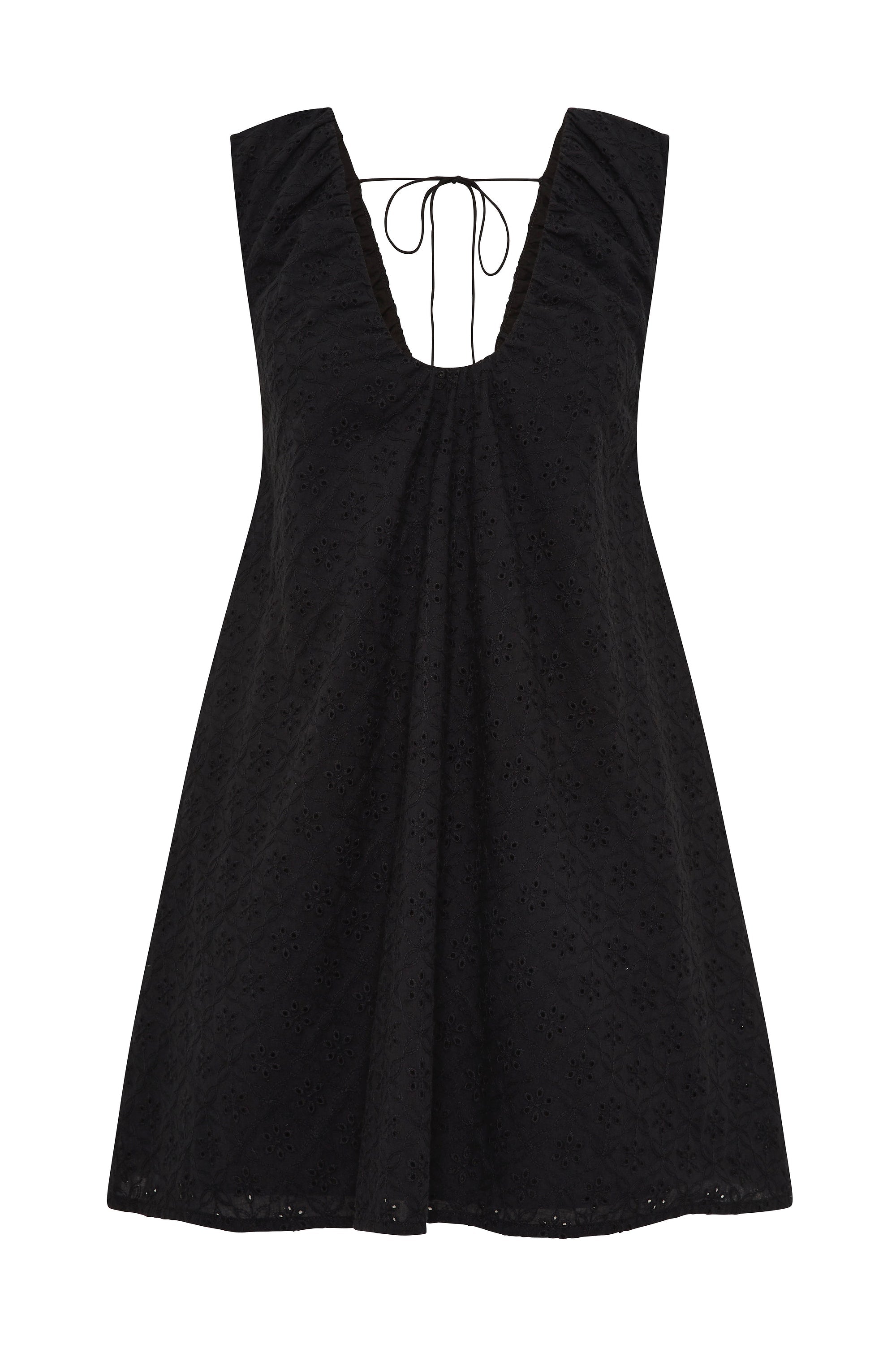 A vintage-inspired mini dress, designed from a uniquely delicate anglaise broderie fabrication in a classic black. With a scoop neckline, it is a relaxed silhouette that flares into an A-line silhouette with side seam pockets. There is also a scoop back with a simple tie detail as well as subtle gathering. Style with a simple sandal for summer occasionwear.