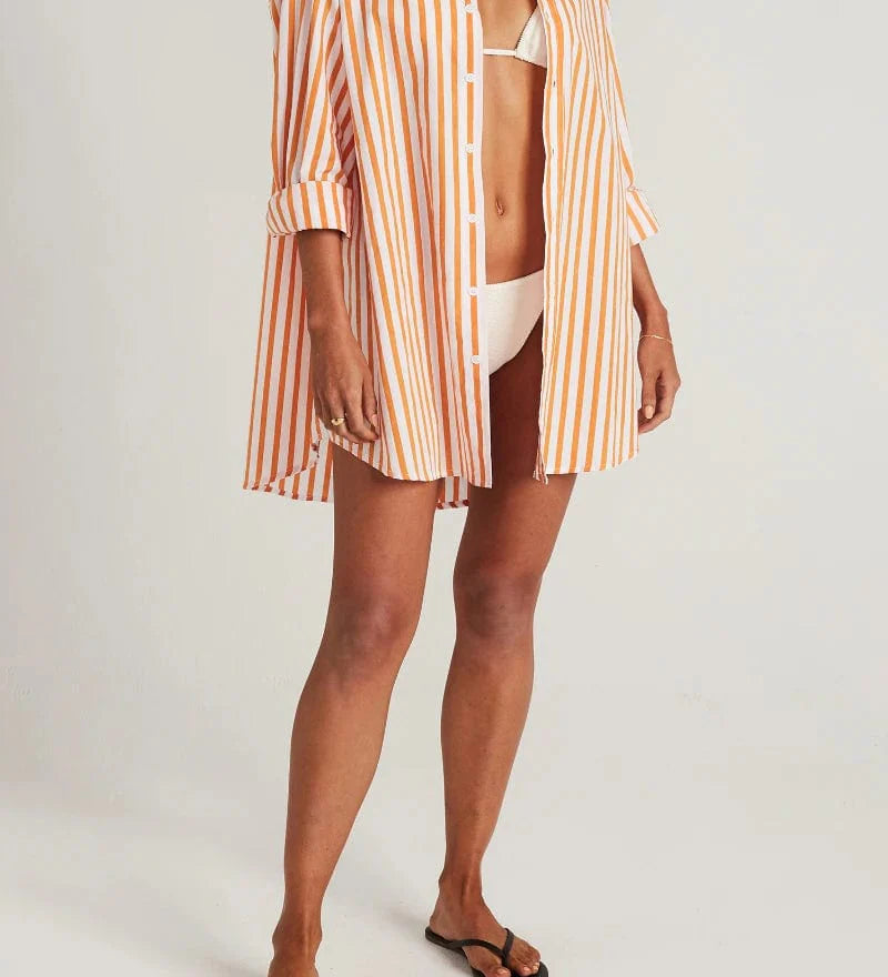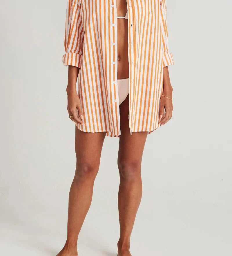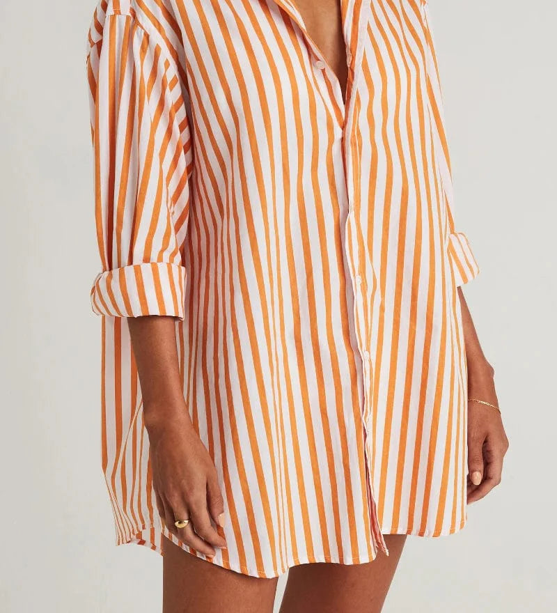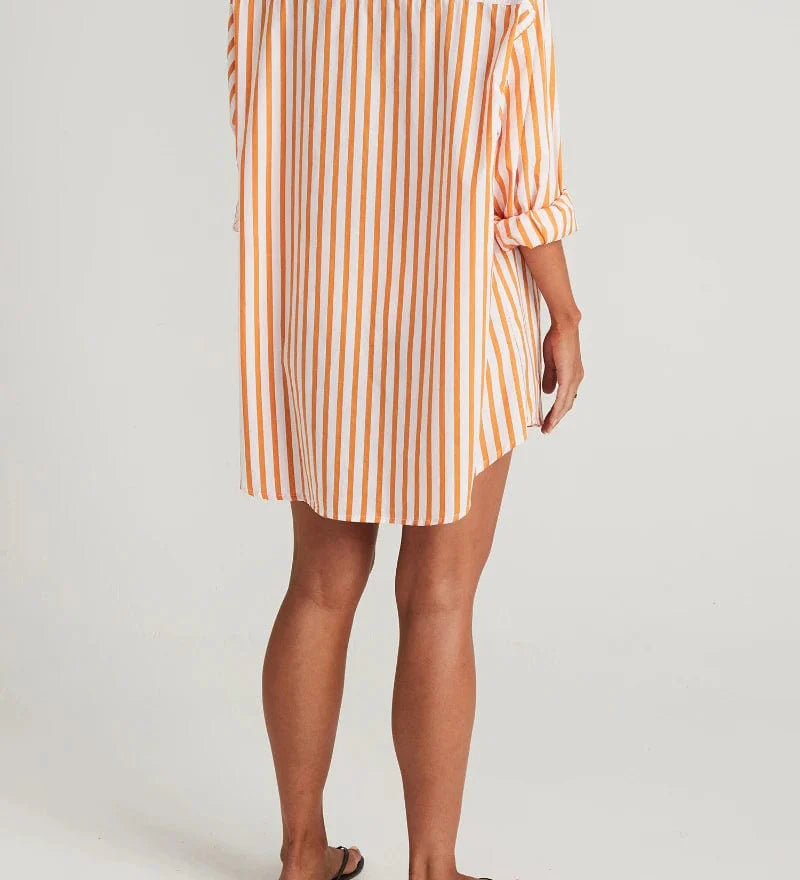 Faithfull - Vega Shirt Dress Martie Stripe Print Tangerine - Final Sale