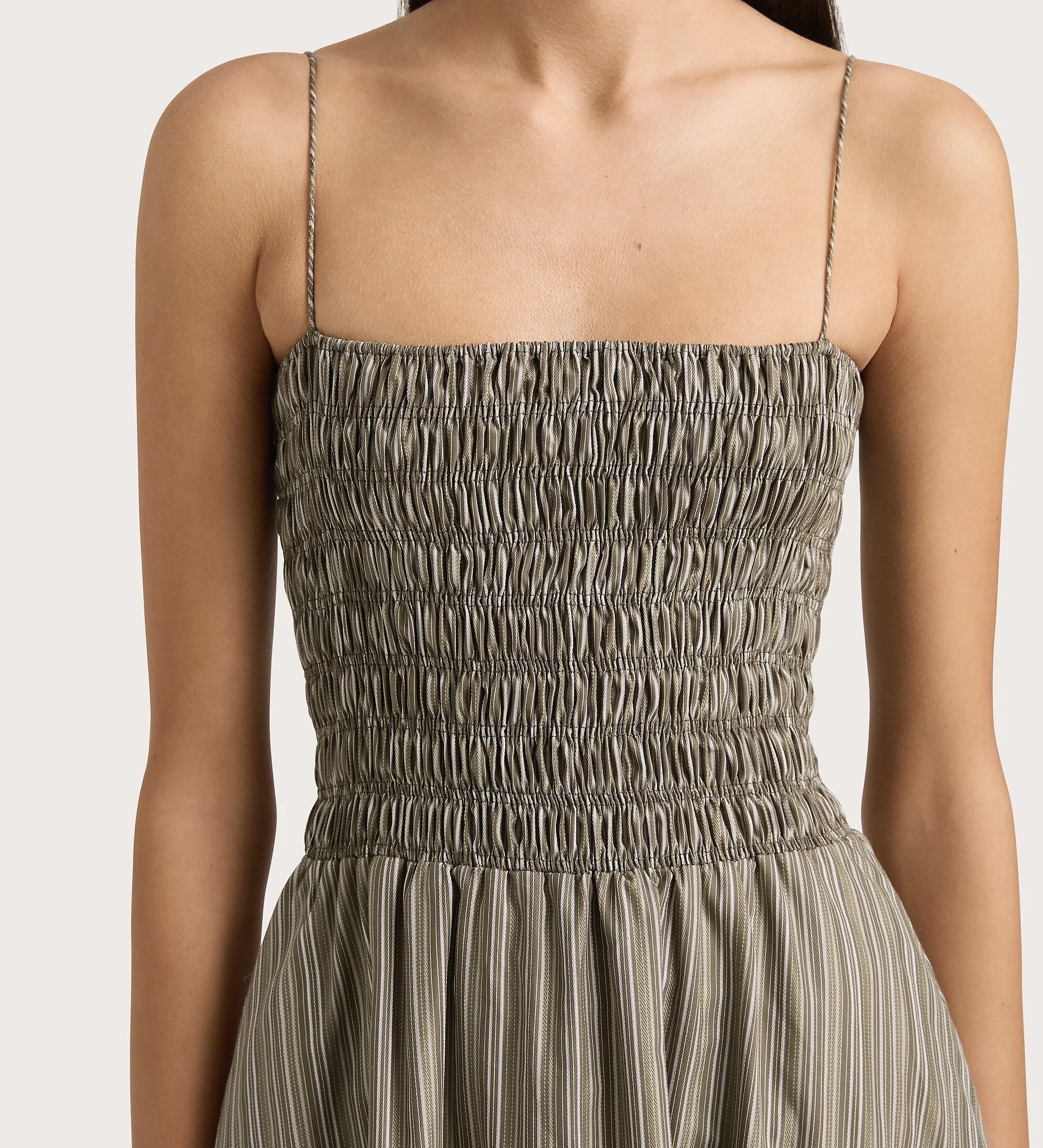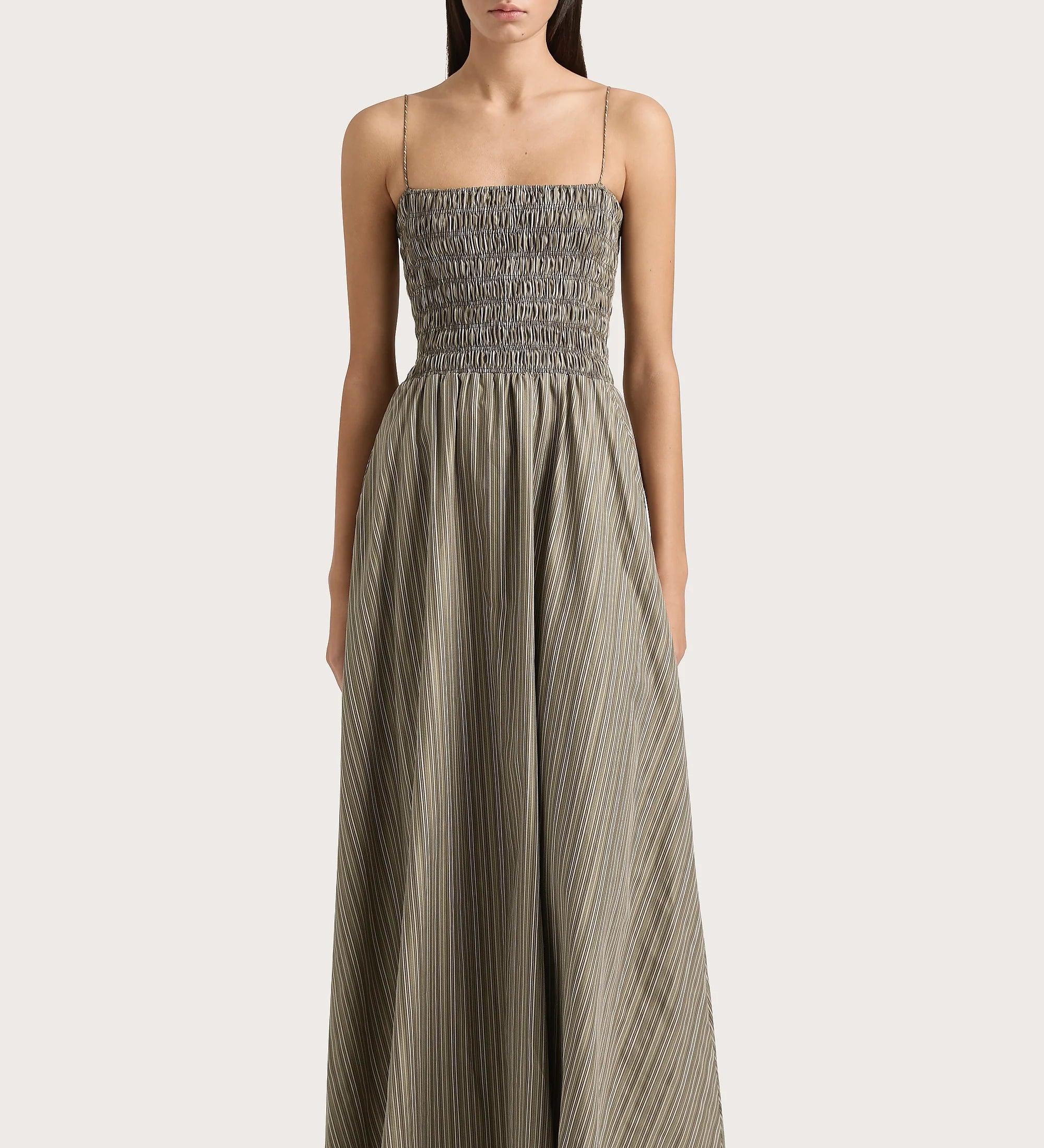 Faithfull - Lida Maxi Dress Khaki Stripe - Final Sale