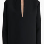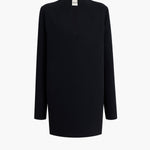 A sleek, funnel-neck minidress that blends tailoring and flou in Italian double-faced crepe selected for its dense, sculptural quality and spongy feel. Darts at notched neckline. Extended long sleeves. Slips on for smooth fit.