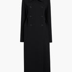 A long and lean trench inspired by military uniforms. Double-breasted silhouette tailored in double-faced Italian crepe with a matte finish. Refined by pintucking and precise topstitching throughout. With epaulets, side pockets, tonal buttons, and back slit. Lined in silky cupro twill.