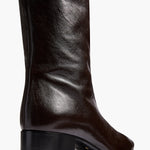 A pointed-toe boot refined to its essence for pull-on ease. With leather sole, stacked block heel, and gold-toned staple details at outsole.
