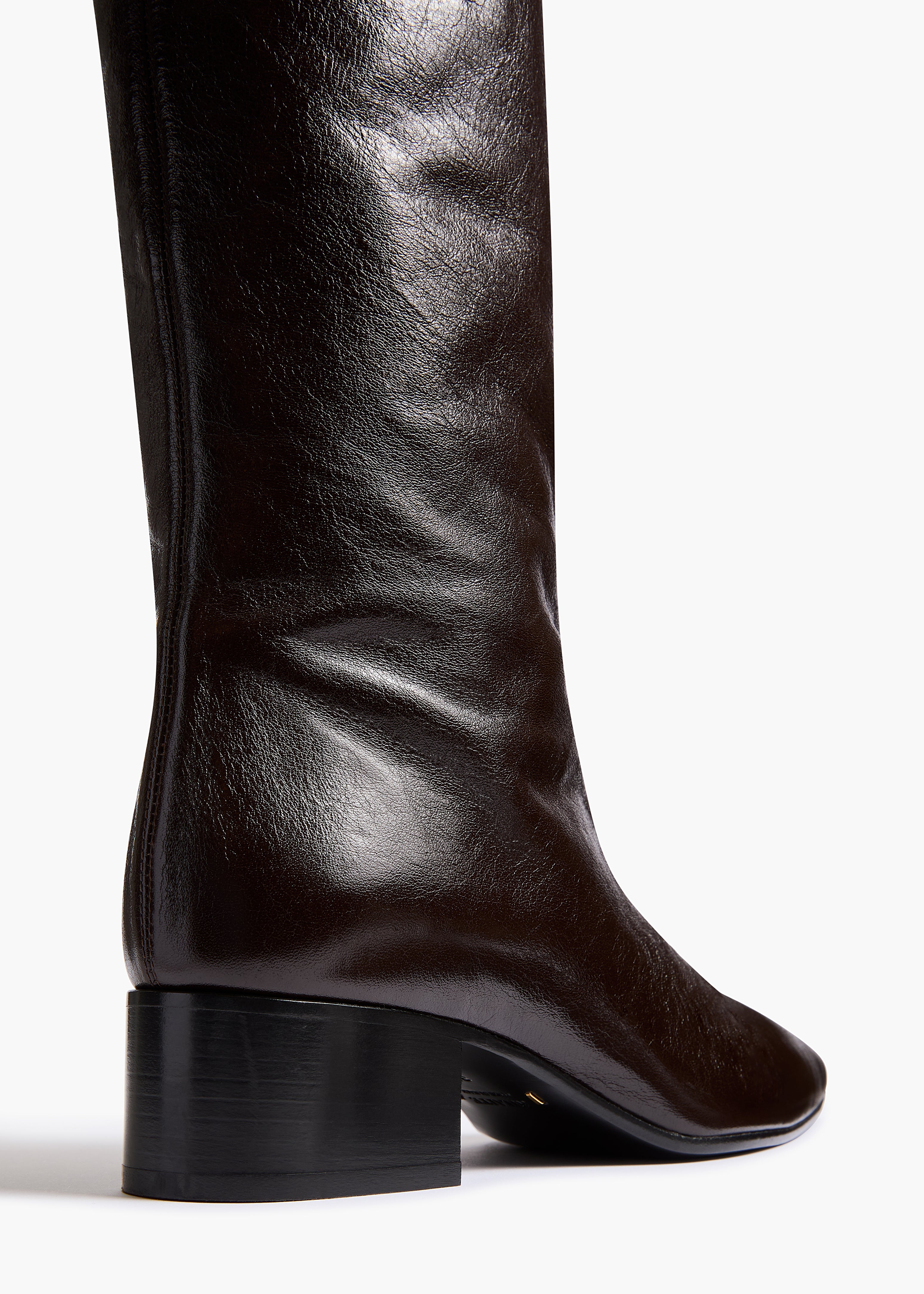 Khaite - Andee Knee - High Boot in Black Glazed Leather