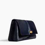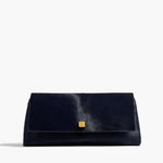 A flap-front clutch of refined lines and soft curves in hair-on calfskin selected for its rich texture and polished look. Art Deco-inspired Empire hardware at magnetic closure. Internal card pocket.