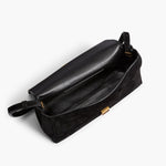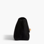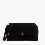 A flap-front bag to carry across the body, on the shoulder, or as a clutch. With removable, adjustable strap and magnetic clasp closure.