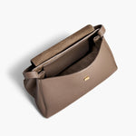 A flap-top bag that combines sculptural volume with refined structure. Accented by Art Deco-inspired hardware at the magnetic closure. Internal slip pocket.