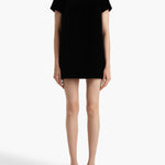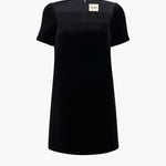 A clean-lined minidress in compact Italian velvet selected for the softness and slight sheen of its short, tightly packed pile. A slimmer front is balanced by volume at the sleeves and back. Concealed zipper.