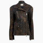 Khaite - Catalina Jacket in Black and Natural Distressed Leather