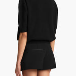 A pullover in dense cashmere selected for its bouncy and substantial softness. Elbow-length sleeves and dimensional ribbing at crewneck, cuffs, and hem.