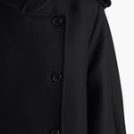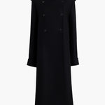 A double-breasted, stand-collar coat in compact melton strengthened by refined and rugged details. Structured by deep, inverted pleat at belted back. Set-in sleeves with broad, belted cuffs. With button-fastening epaulets and sleek, highly placed side pockets. Lined in silky cupro twill.