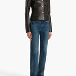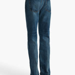 Inspired by '90s photographs of off-duty supermodels, this straight-leg silhouette brings a new ease to rigid denim. The mid-rise cut is designed to sit just below the navel, with squared and slim lines. Each hand-finished pair has a button of antiqued nickel.