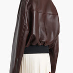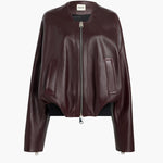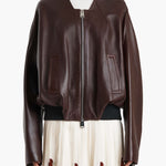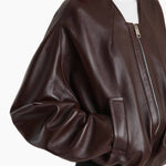 A reimagined bomber in exceptionally soft plongé leather. Relaxed and rounded silhouette with clean, angular neckline. Dropped shoulder seams. Two-way zip.