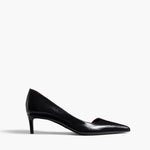 A sleek and striking D'Orsay pump refined to the rich texture of glossy calfskin and a pointed-toe silhouette Curvy cutaway construction designed to reveal the arch of the foot and visually elongate the leg. Impeccable Italian construction includes discreet internal elasticated band at back.