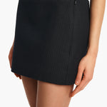 A minimal miniskirt in pinstriped wool for a fresh perspective on the suit. Finished with a concealed side zipper closure.