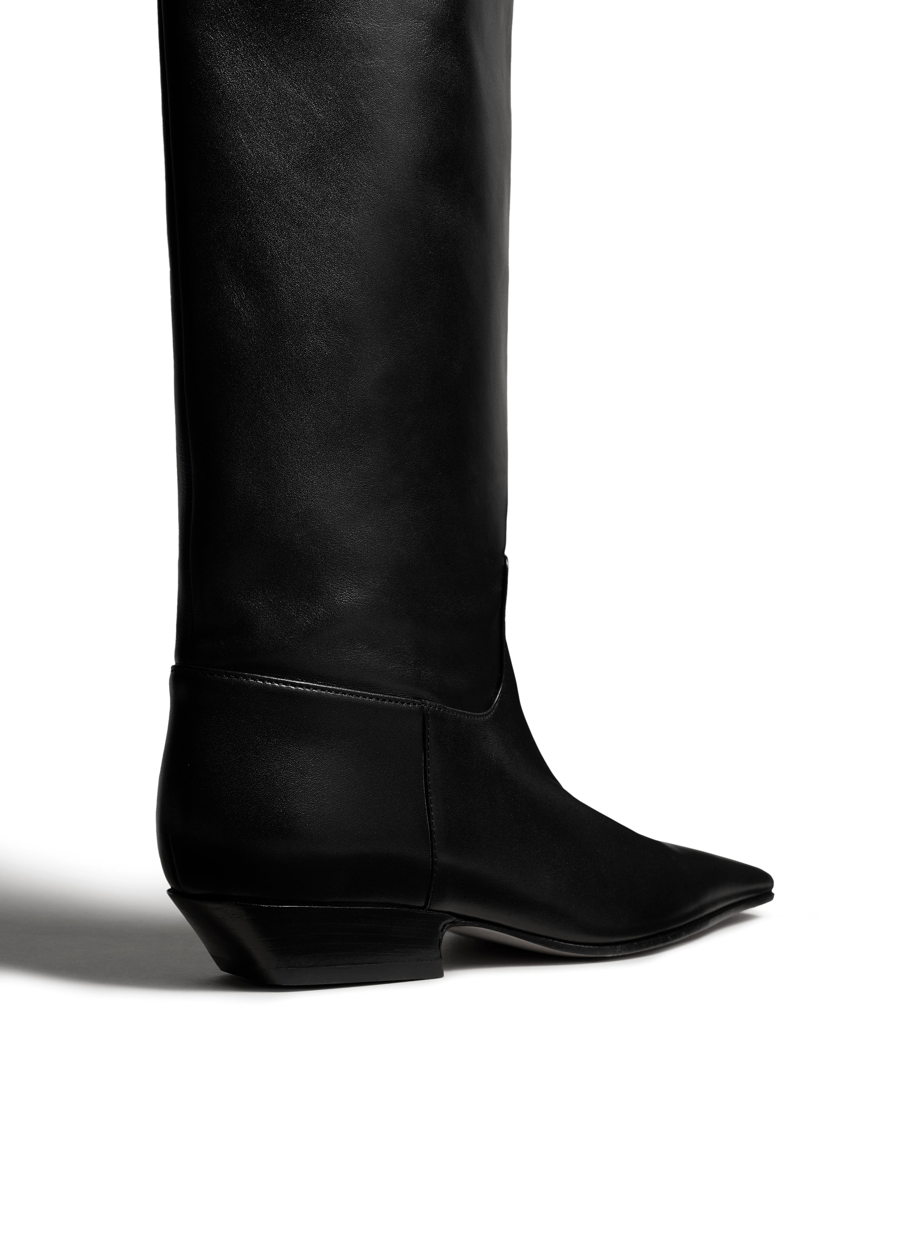 Debuting with the Pre-Fall collection's wardrobe of intuition, this sleek, square-toed boot is crafted in Italy of supple calfskin and refined by tonal topstitching. The low, inset heel provides stability and comfort for extended wear. Free of closures, it pulls on for a classic fit.