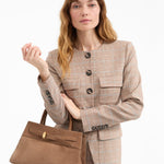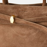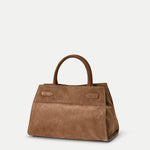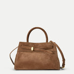 The aptly named Dash is a go-anywhere bag that takes you from work to weekends. Crafted from soft Italian suede in taupe with an adjustable belted strap, it’s designed with both a structured top handle and a removable shoulder strap for maximum versatility.