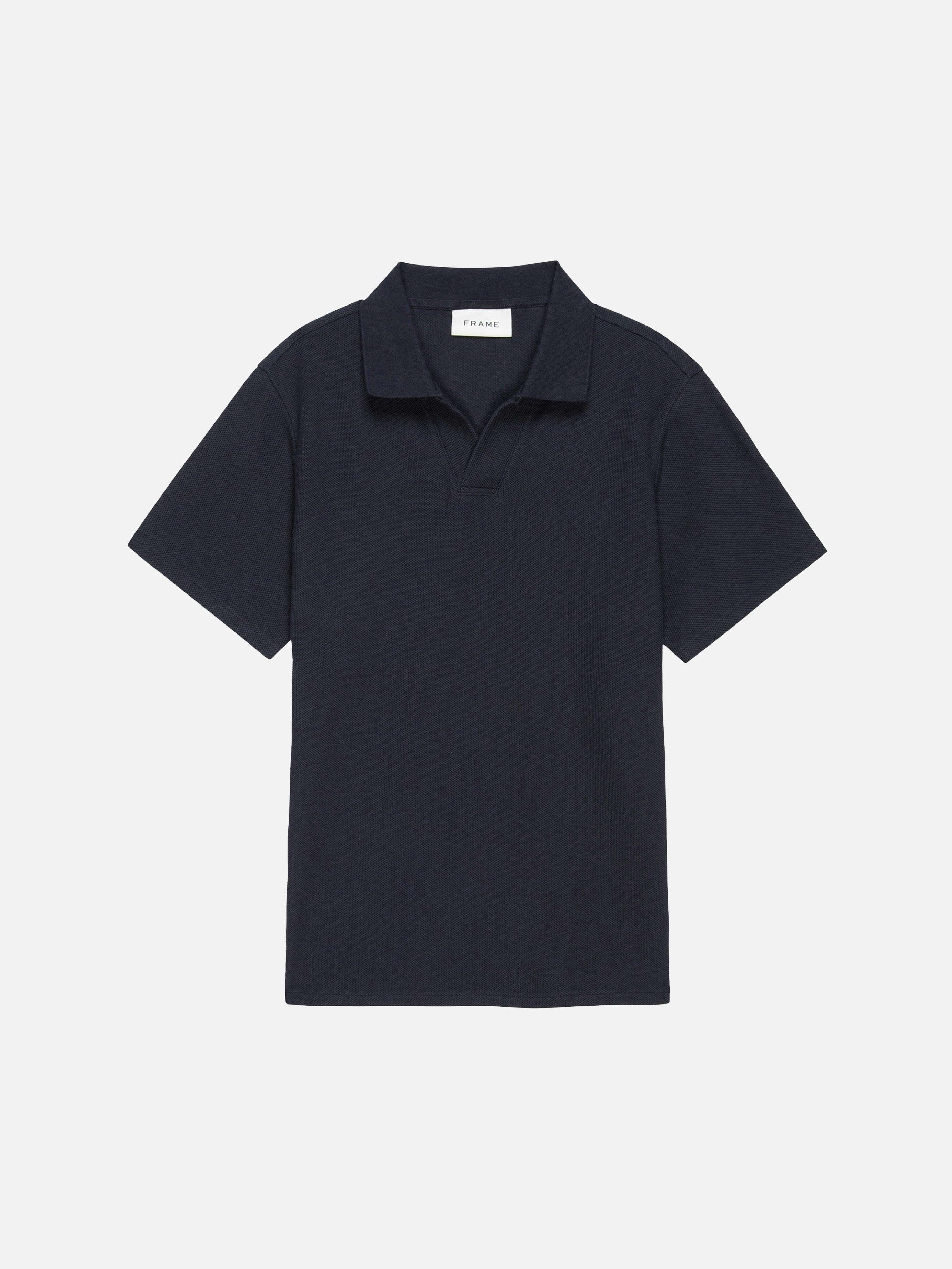 A modern update to the classic closet staple, this short-sleeve polo features an open V-neck collar sans buttons. The premium textured cotton fabrication lends a luxurious look and feel. Fit it into your 9-5 rotation as well as your off-duty weekend routine.