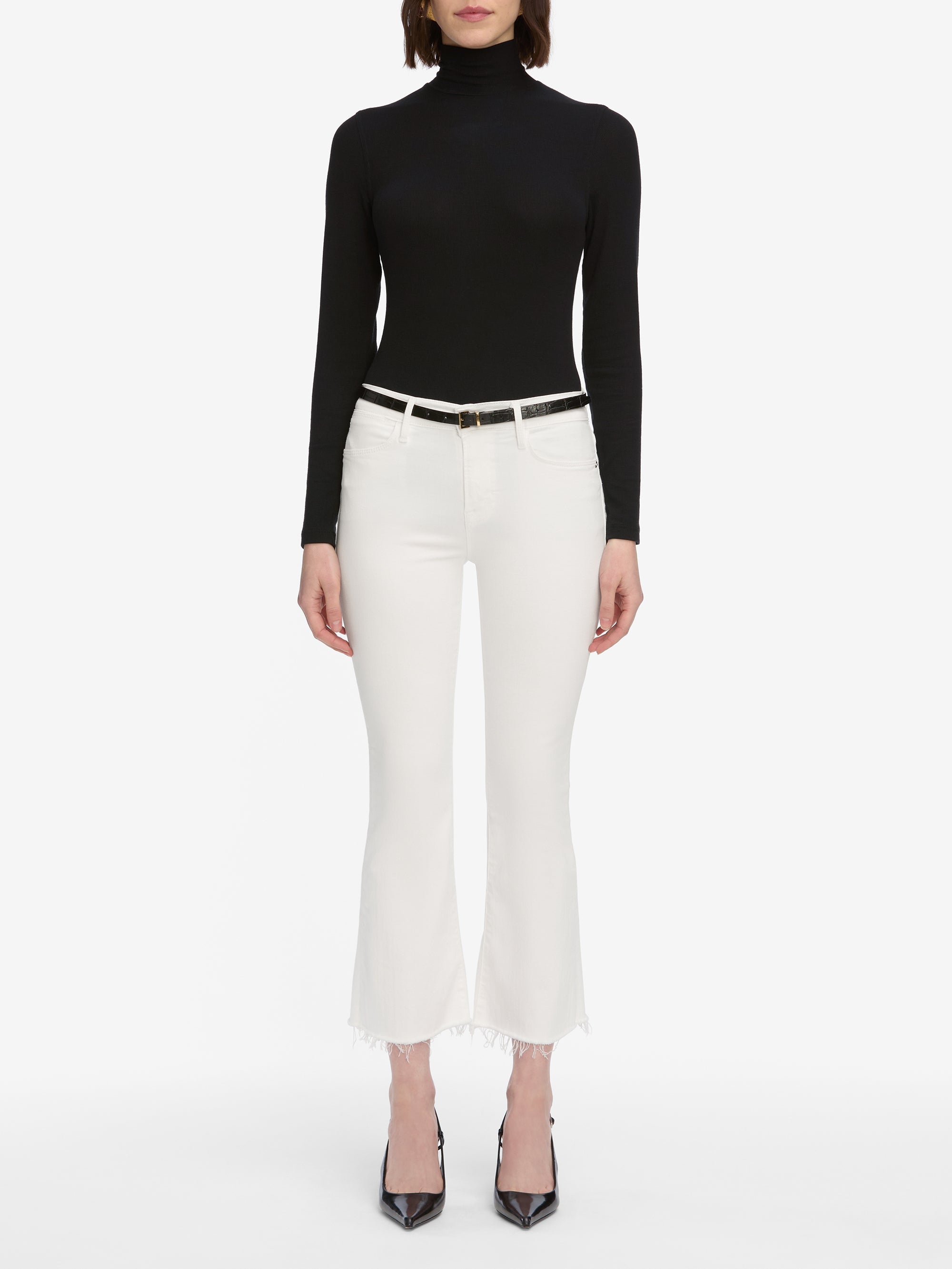 Our best-selling cropped boot-cut silhouette featuring a vintage-inspired white wash. Designed with a comfortable contour waistband that’s form-fitting at the top and tapers out from the knee, style this jean with an oversized blazer, or voluminous blouse.