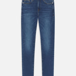 A FRAME signature jean, this style is designed with a classic 5-pocket construction, comfortable mid rise, flattering straight leg, and tapered slim fit at the leg opening. Crafted from smooth Structured Stretch denim in a dark blue hue.