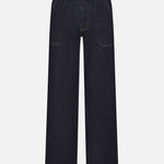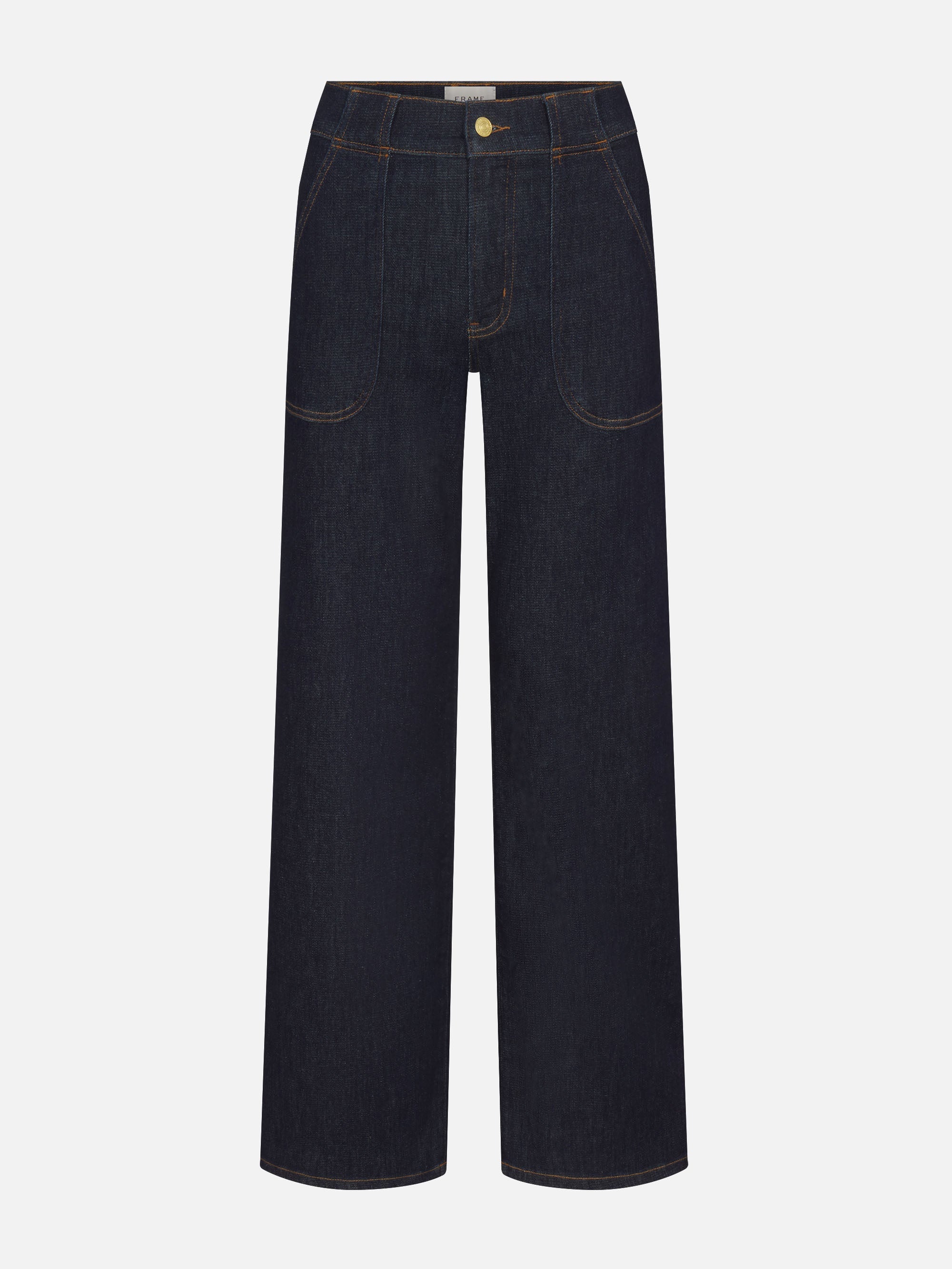 A perfect balance of easy and elevated, this wide-leg fit can be worn all day, any day. Utility-inspired pockets hint at workwear style while super stretchy denim offers extra comfort. Complement the high-rise waist with a leather belt and play up the full-length inseam with platform clogs.