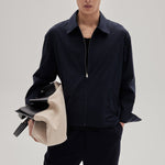 Crisp, lightweight, and sharply cut. Made from 100% cotton in dark navy, this jacket adds quiet structure to any look—finished with clean lines and a touch of utility. Wear it zipped up or shrugged on.