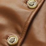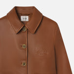 This femme leather jacket keeps it clean and simple. Crafted from lustrous lamb leather, this cropped, boxy style has tonal patch pockets for a cohesive look that's further defined by Ritz-engraved buttons and their illustrious moniker at the chest.