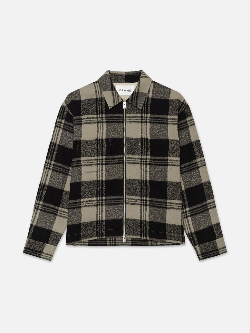 FRAME - Spring Plaid Zip Shirt Jacket -- Smoke Beige/Noir