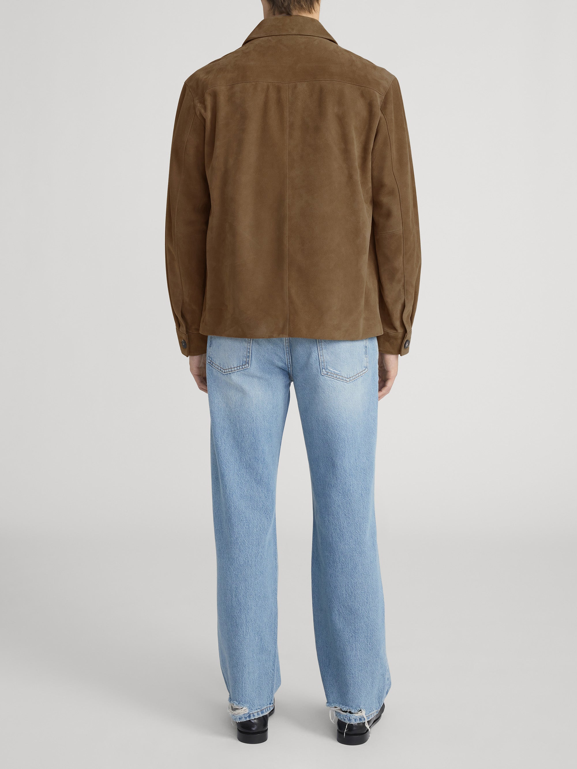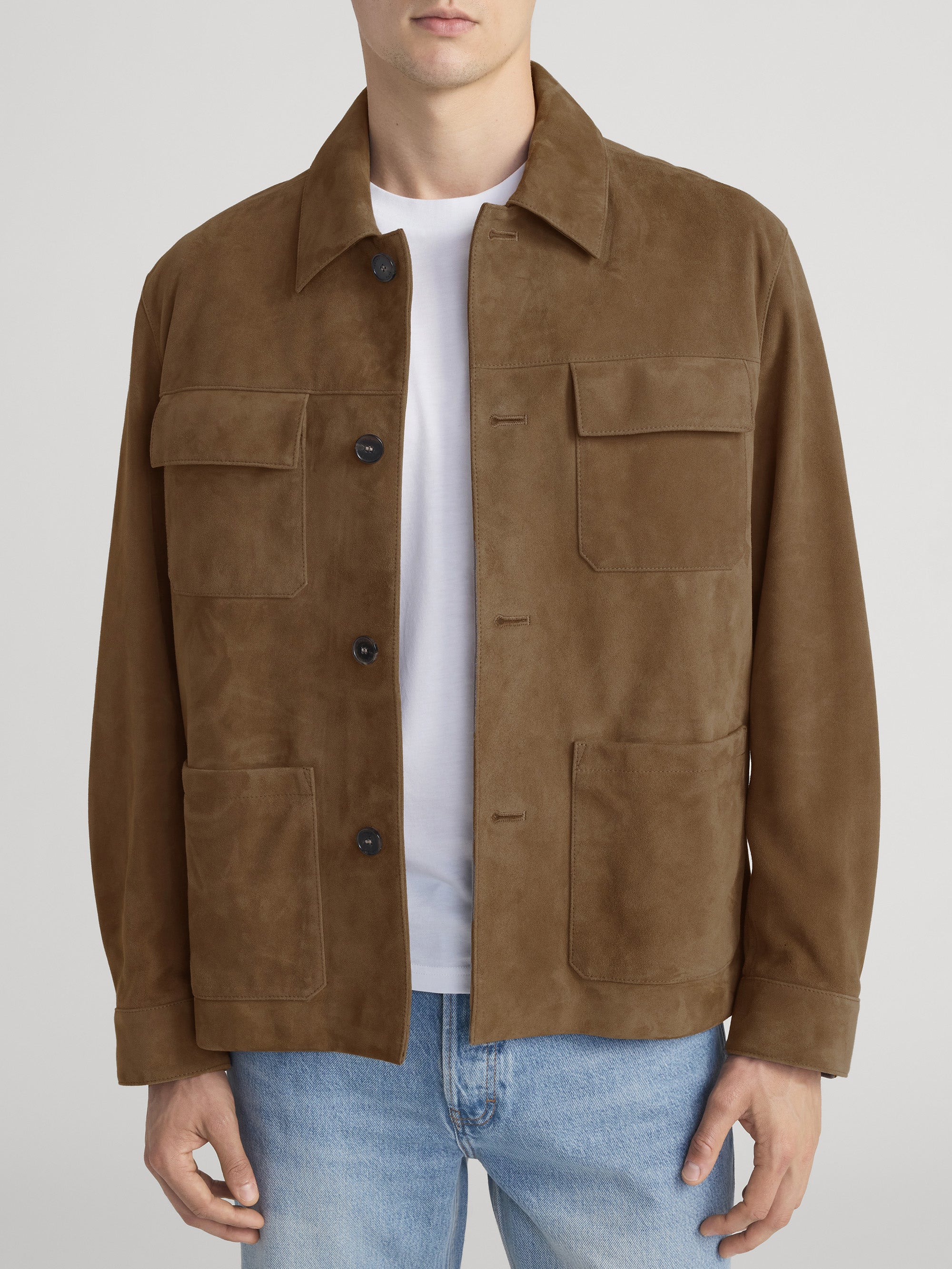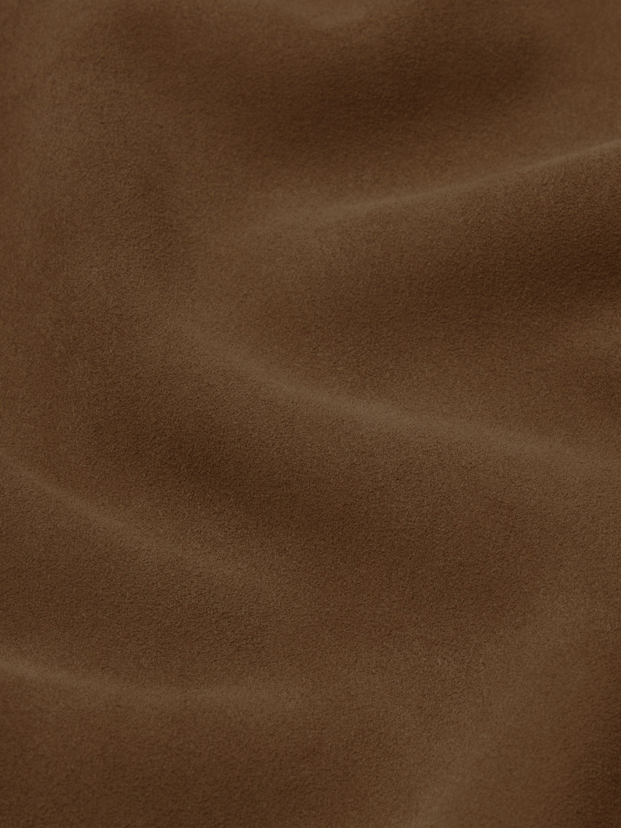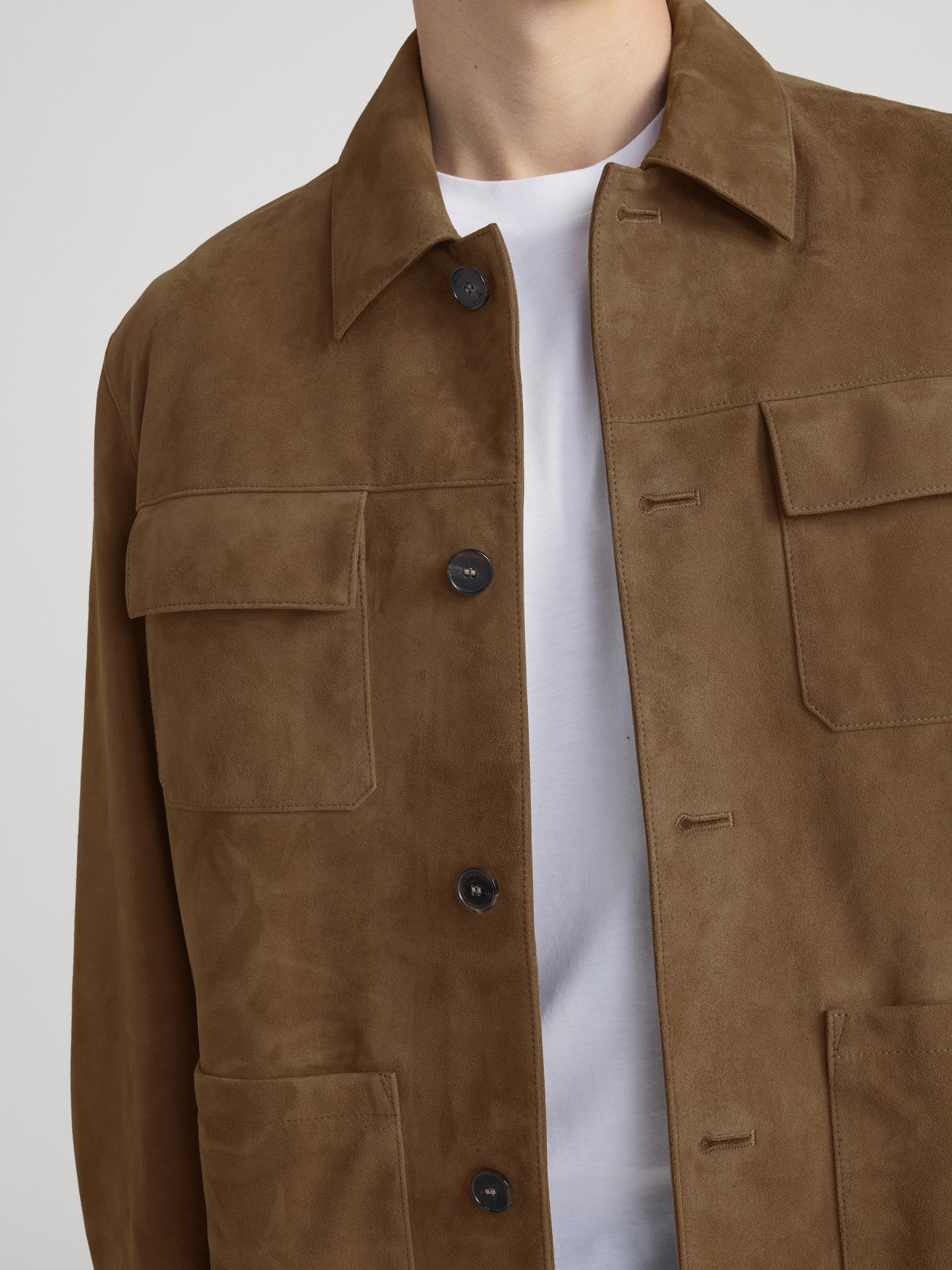 Crafted from pure suede, this crisp coat features two font patch pockets, two front flap pockets, front button closures and a masculine pointed collar.