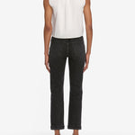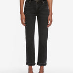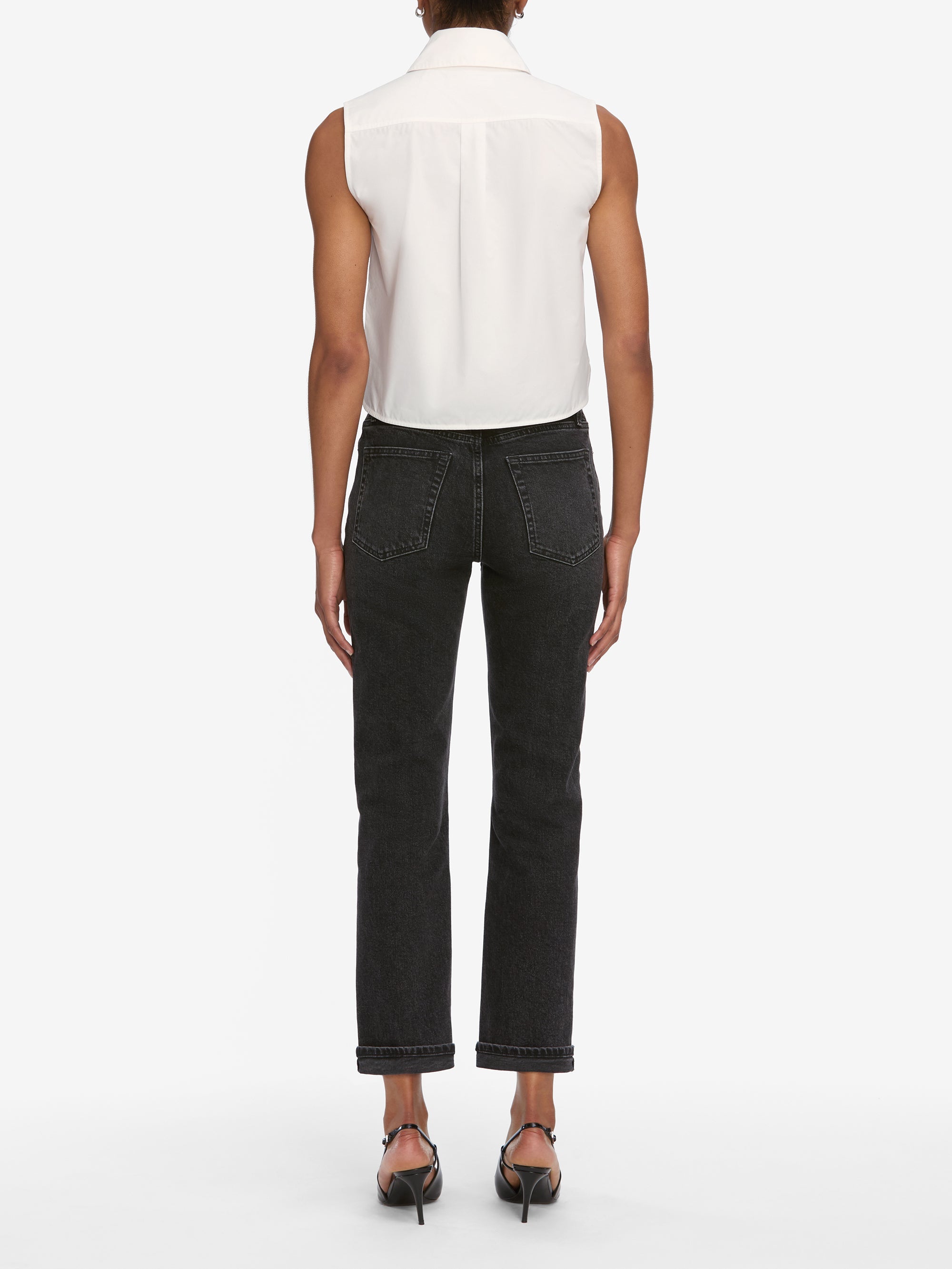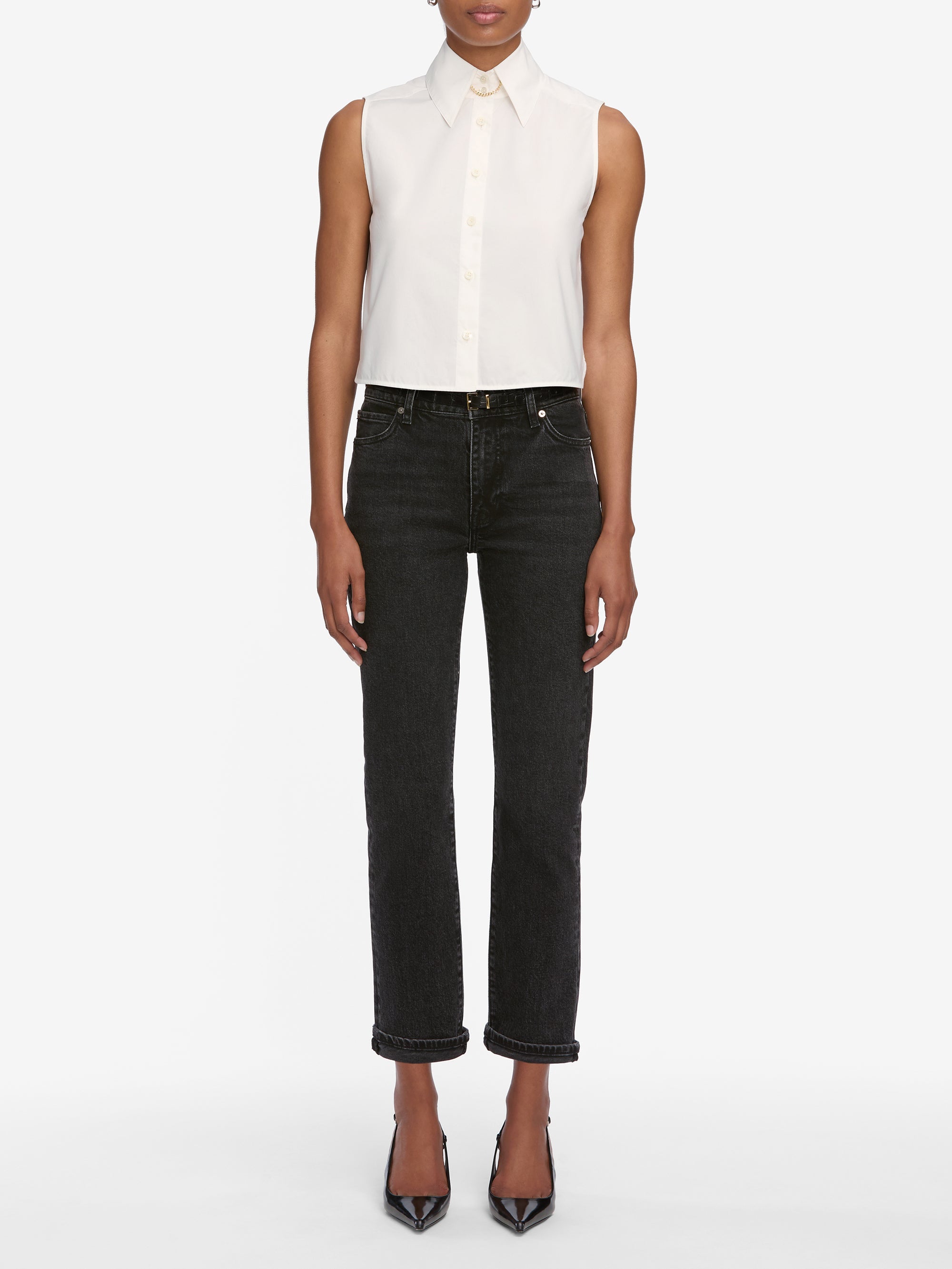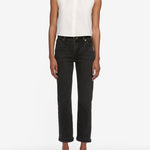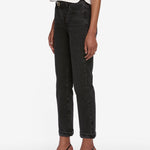 A boyfriend jean for the new millennium, this mid-rise silhouette hugs the hip and finishes at the ankle. Cut in Structured Stretch denim for vintage character and modern comfort, in a black wash we love cuffed—but is just as good unrolled.
