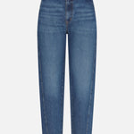 This pant features a mid-rise and a delicately curved outseam that finishes at the ankle. Cut in a luxe non-stretch denim.