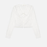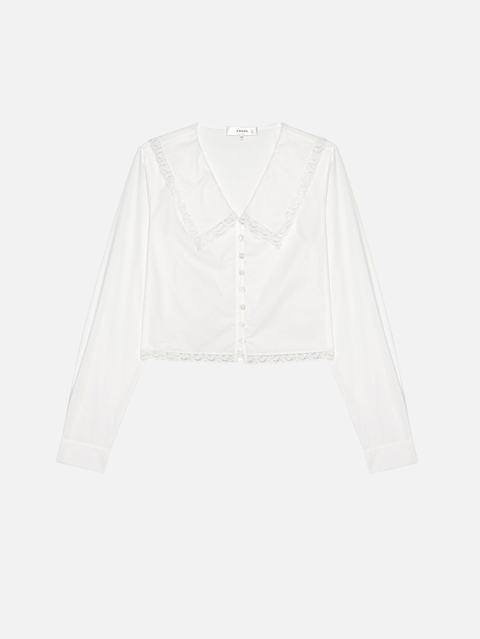 This 100% cotton blouse updates a best-selling silhouette with lace trim, delicate buttons, and slightly oversized sleeves for an effortlessly romantic finish.