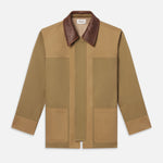 FRAME’s modern take on the classic barn jacket. Crafted in structured cotton with tonal leather trim at the collar and elbow patches. Finished with a covered placket and a longer, hip-grazing length for effortless layering.