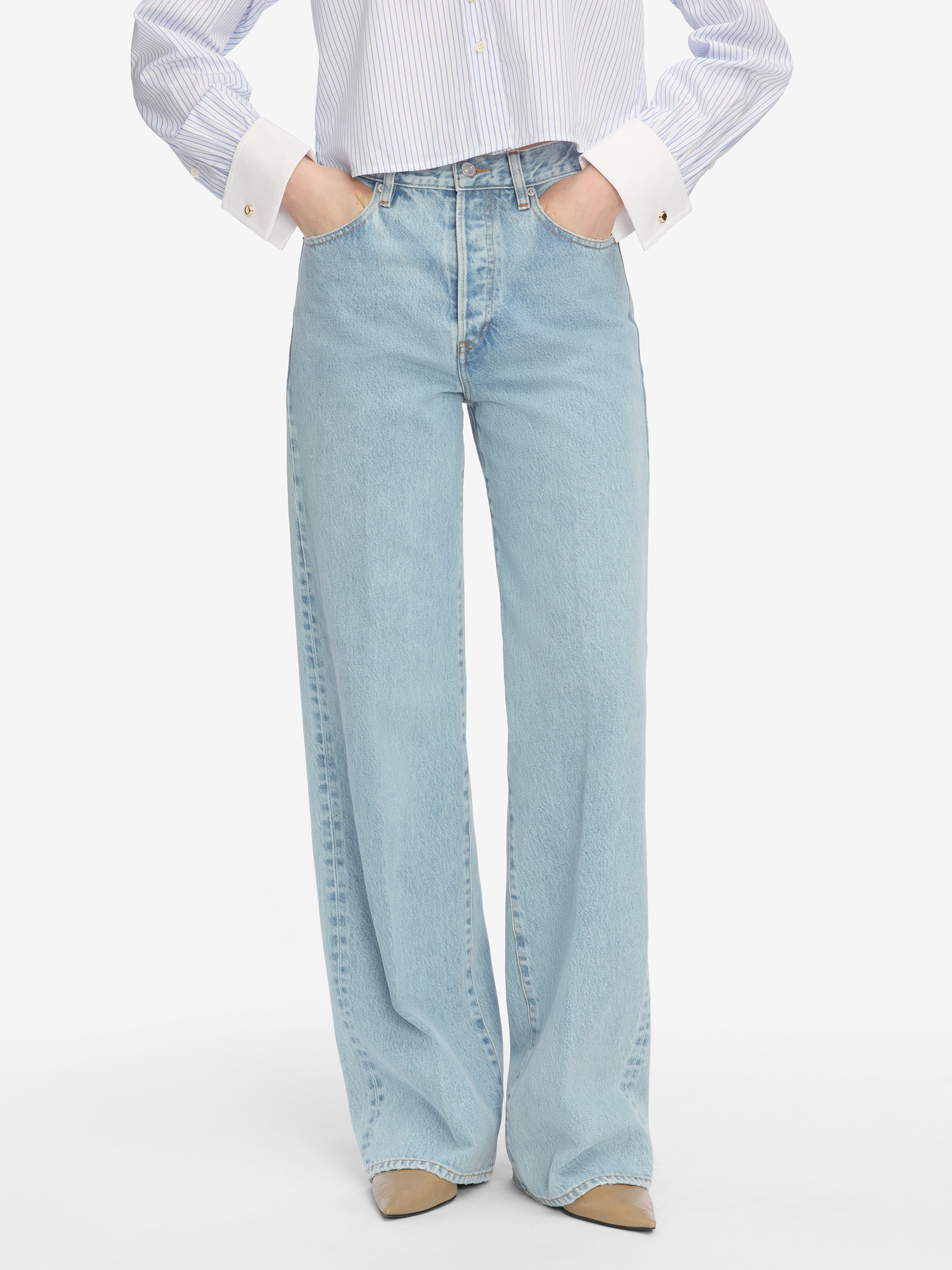 Your cleaned-up baggy jean for the week. This fresh new fit features a high rise and relaxed wide leg that takes you to the office, the classroom, and beyond. Made from 100% regenerative cotton.