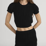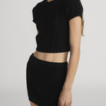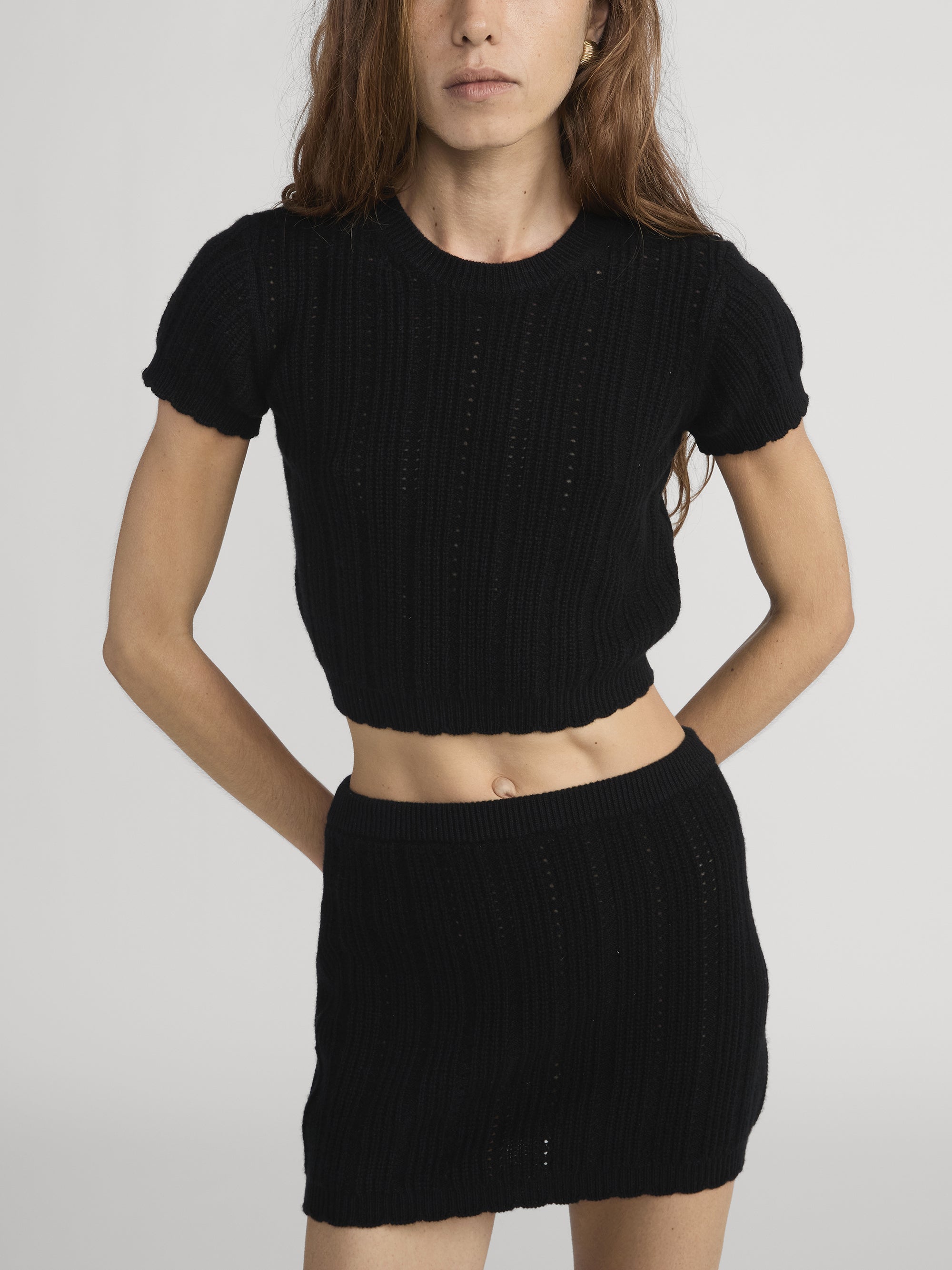 Rendered in pure cashmere, this knit is lightweight with a soft hand, cut in a slim silhouette that is perfectly cropped. The ultimate airy knit, a cool girl sweater.