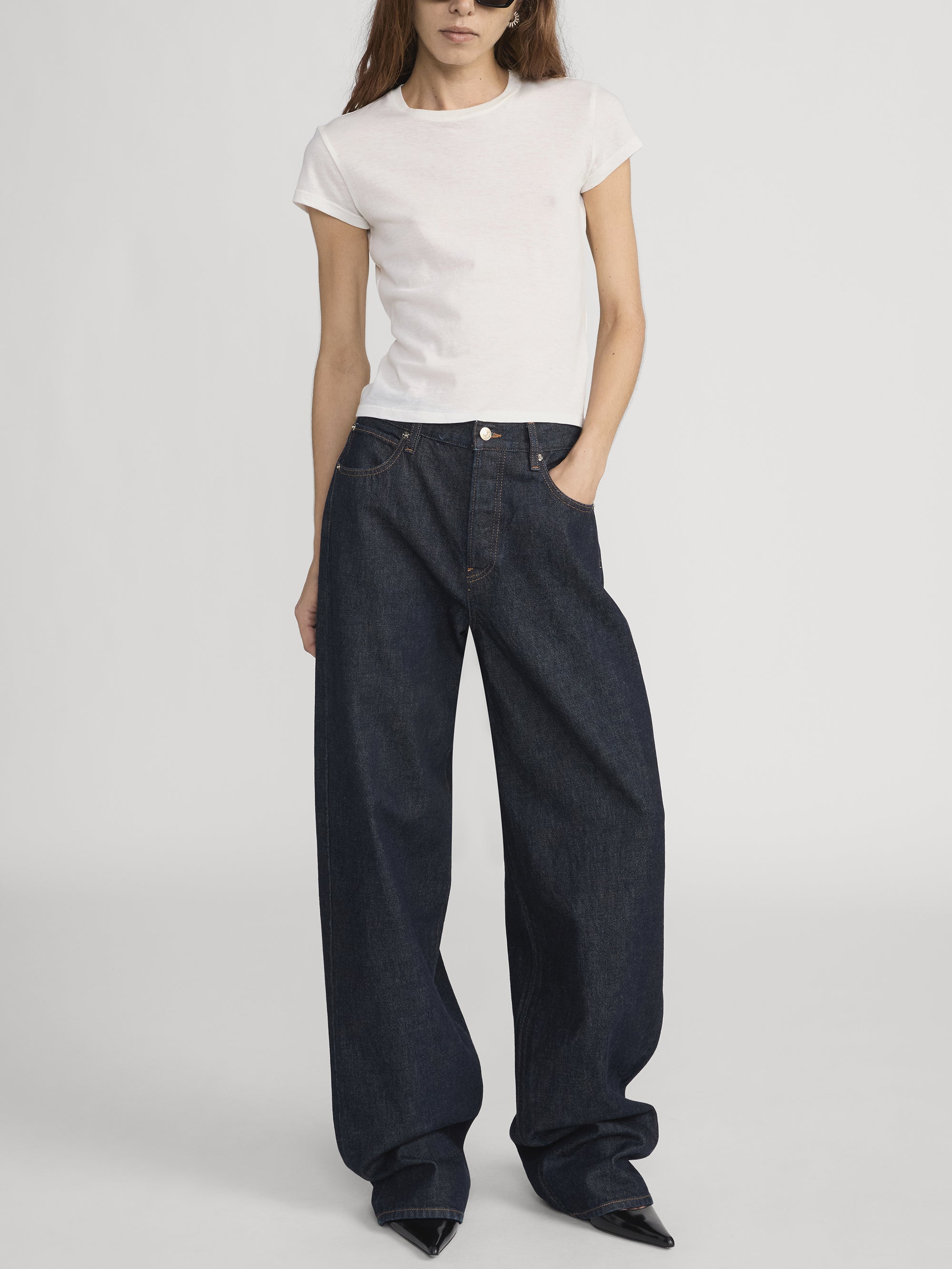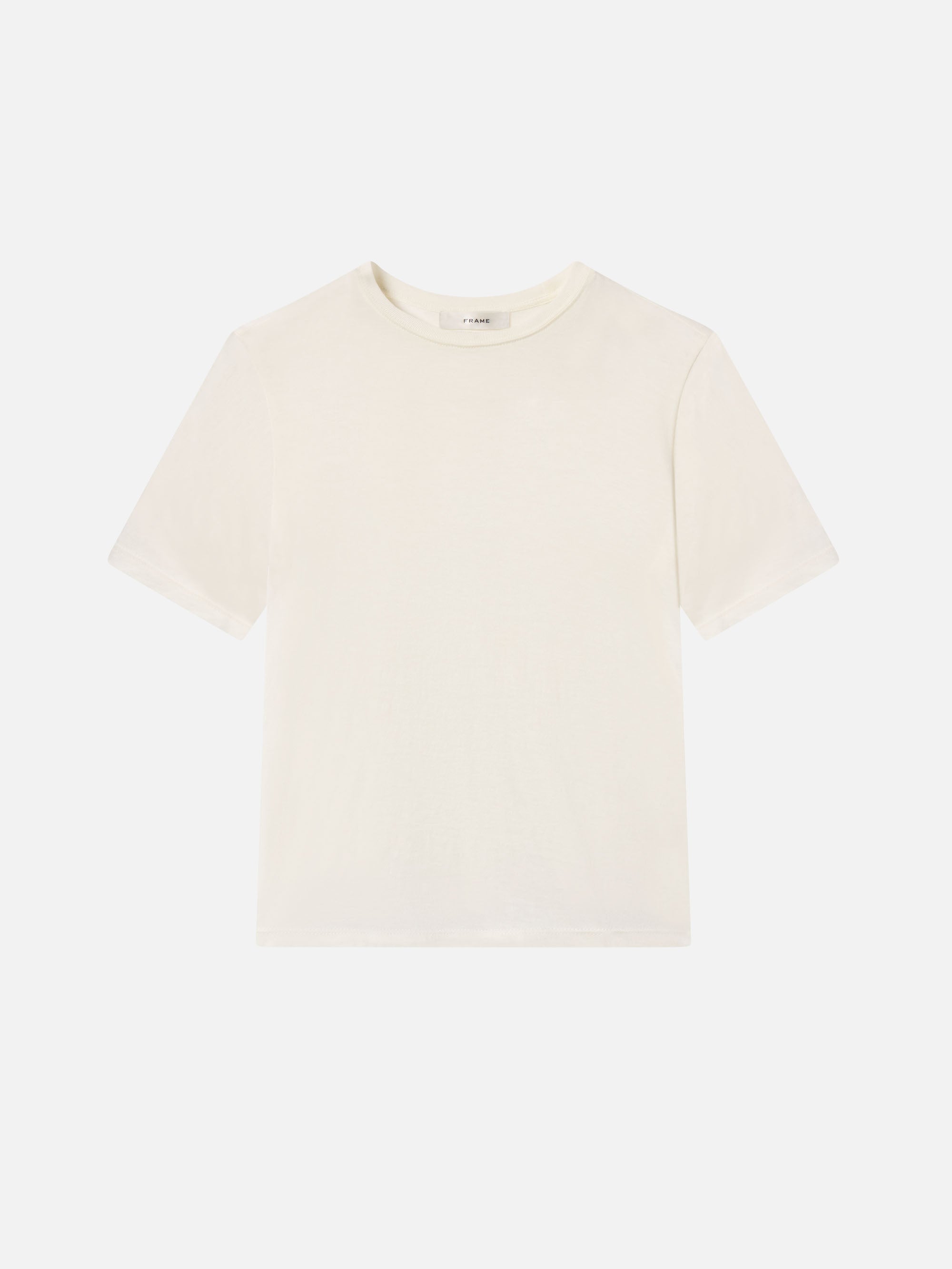 Spun from a cotton-cashmere blend, this crewneck tee is soft with a sleek drape. A polished essential that completes the minimalist uniform.
