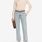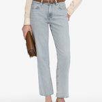 A cleaned-up rendition of a relaxed jean, this straight-leg pair "hangs" from a mid-rise waist with just enough room through the hip and thigh for a fluid fit and feel. Never slouchy, always effortless, The Hang has an easy, tailored look that strikes the perfect balance.