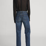 A cleaned-up rendition of a relaxed jean, this straight-leg pair "hangs" from a mid-rise waist with just enough room through the hip and thigh for a fluid fit and feel. A tailored yet effortless jean that strikes the perfect balance.