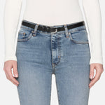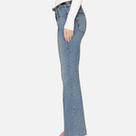The Icon is a hip-hugging, super-stretch jean with a flare that breaks high on the leg. The iconic '70s silhouette is so soft, subtle and flattering, it's an instant FRAME favorite—and the raw, full-length hem is perfect with a heel.