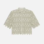 A feminine take on masculine shirting, this unlined button-down is crafted from a luxurious lace with a scallop-like finish along the hems. Featuring a slightly cropped, boxy fit, pair the Lace Button Up Shirt with oversized, destroyed denim to juxtapose the romantic nature of the blouse.