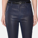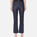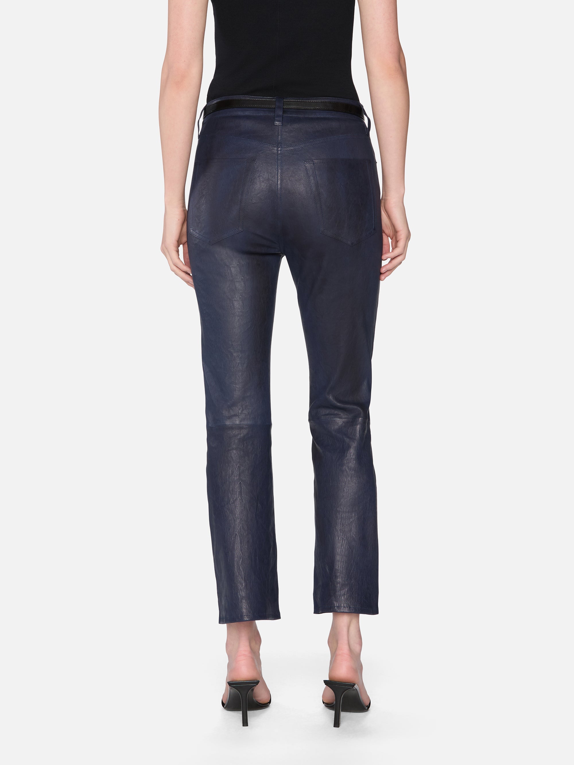 The new Reboot Crop, now in soft, stretchy leather. This deep blue pair features the signature cropped inseam and soft bootcut that hits above the ankle. Wear it out with a baby tee and kitten heel—or anything with edge.