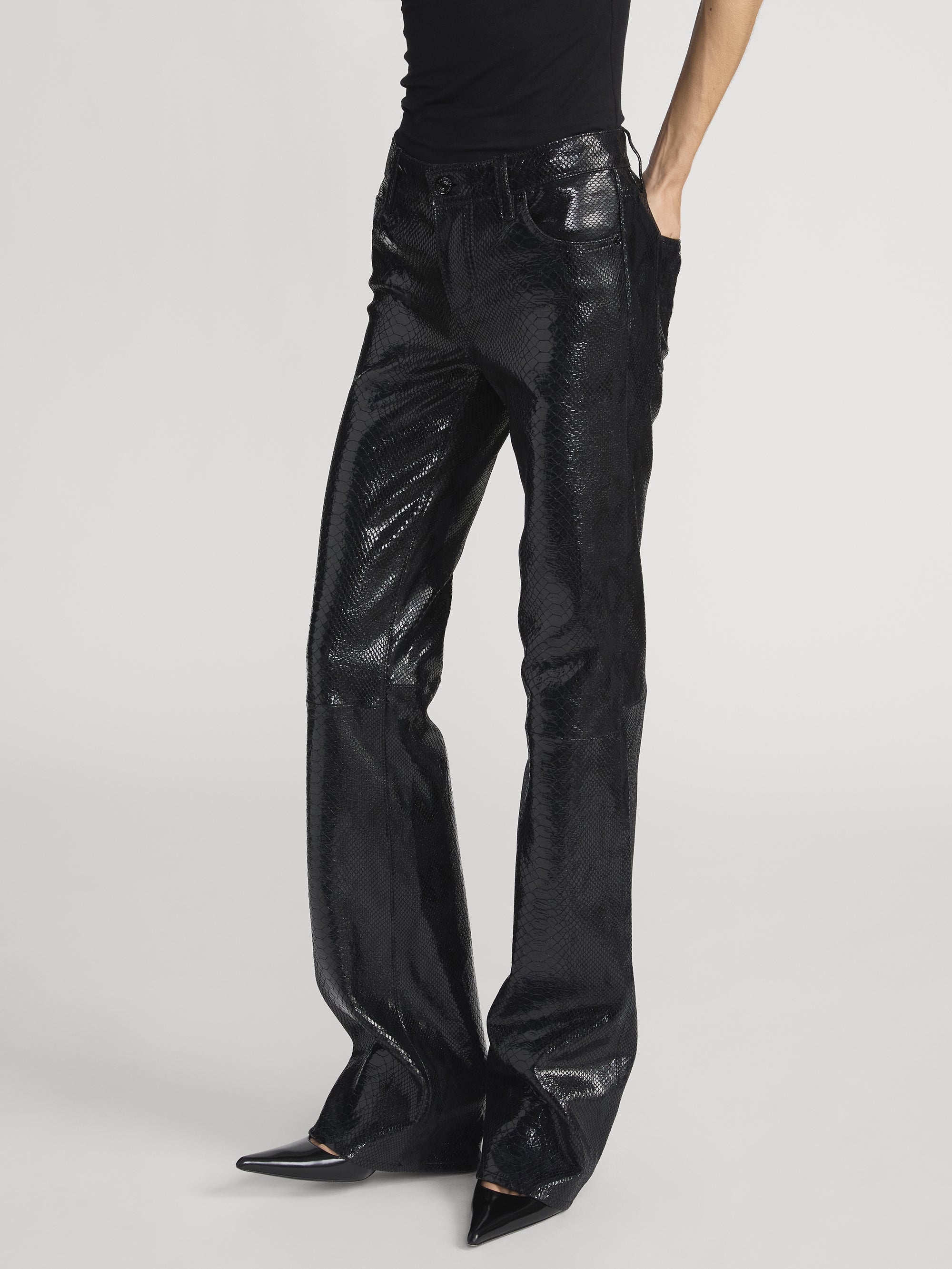 Our low-rise Rodeo silhouette, now in stretch lamb leather with a foiled python-print overlay. Tailored for a slim fit, with a subtle bootcut and leg-lengthening 33" inseam.