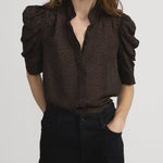 At once modern and romantic, this silk blouse has become a FRAME favorite. Featuring a high neckline and boldly puffed sleeves with ruched detailing, it easily complements any of your denim.