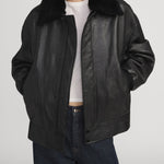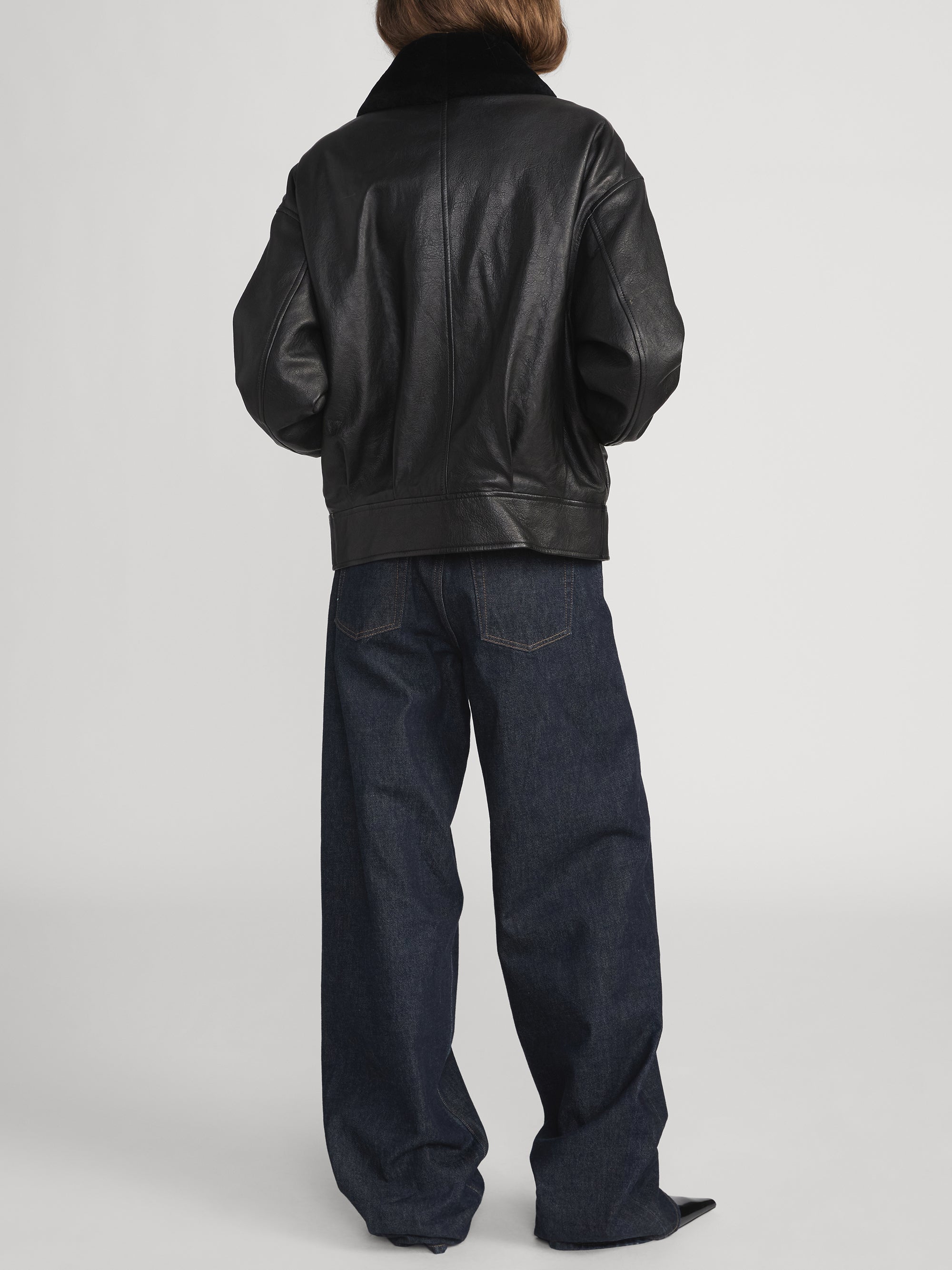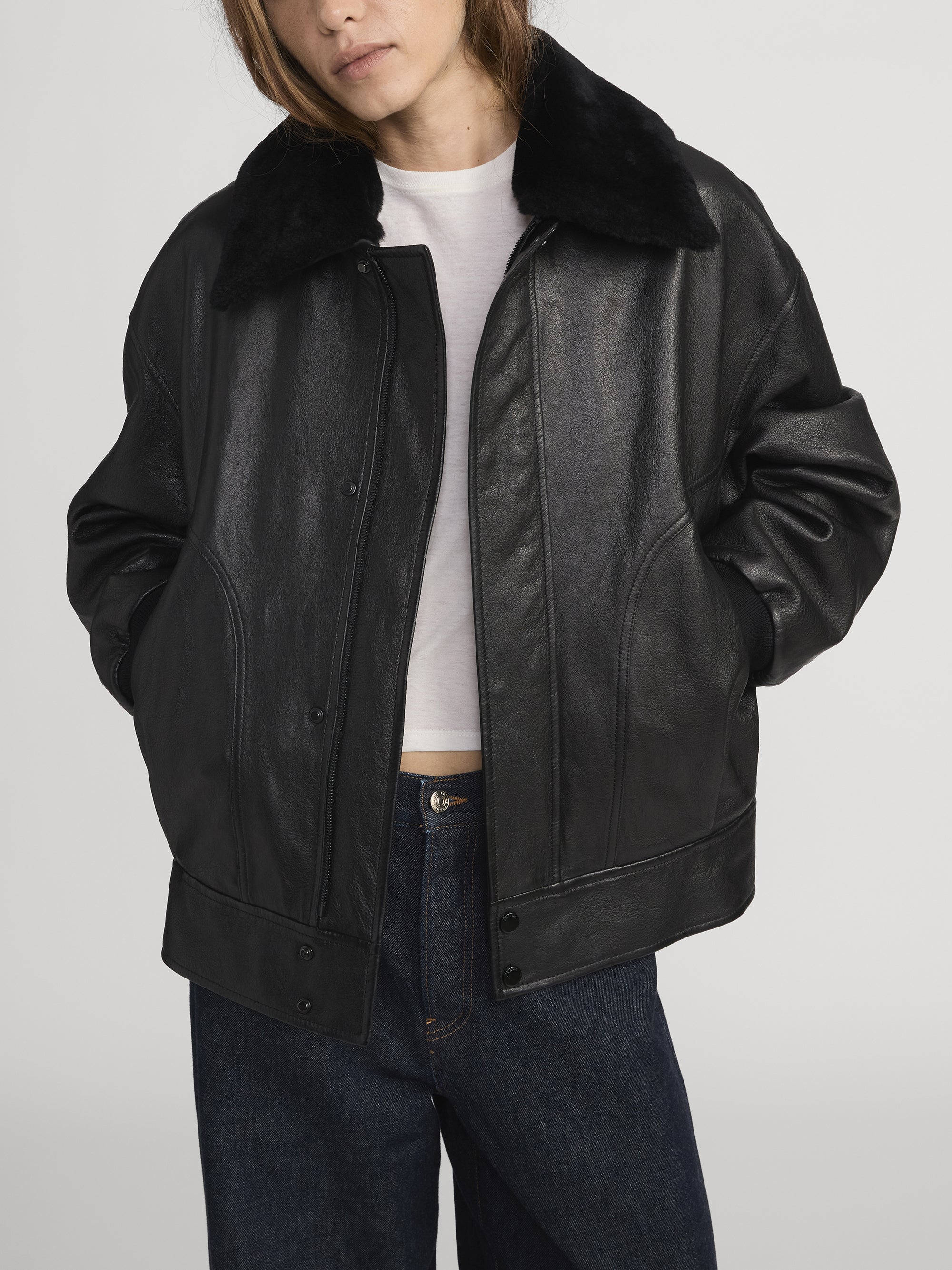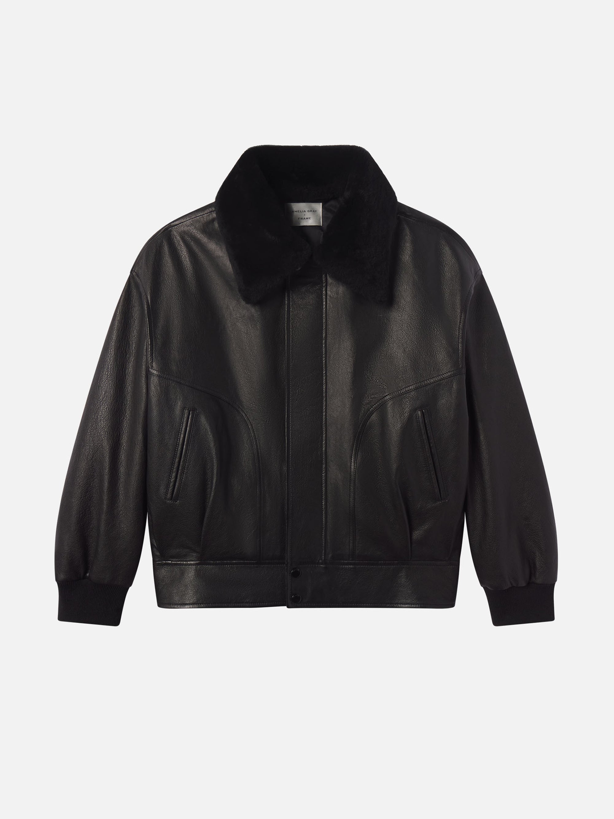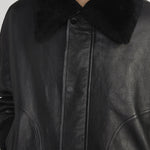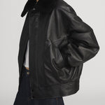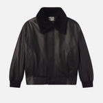 Crafted from smooth lamb leather, this bomber jacket nods to iconic aviation styles with modern refinement. The shearling collar adding the perfect amount of plushness for a winter evening. An easy to style piece that elevates both daytime denim and eveningwear.