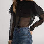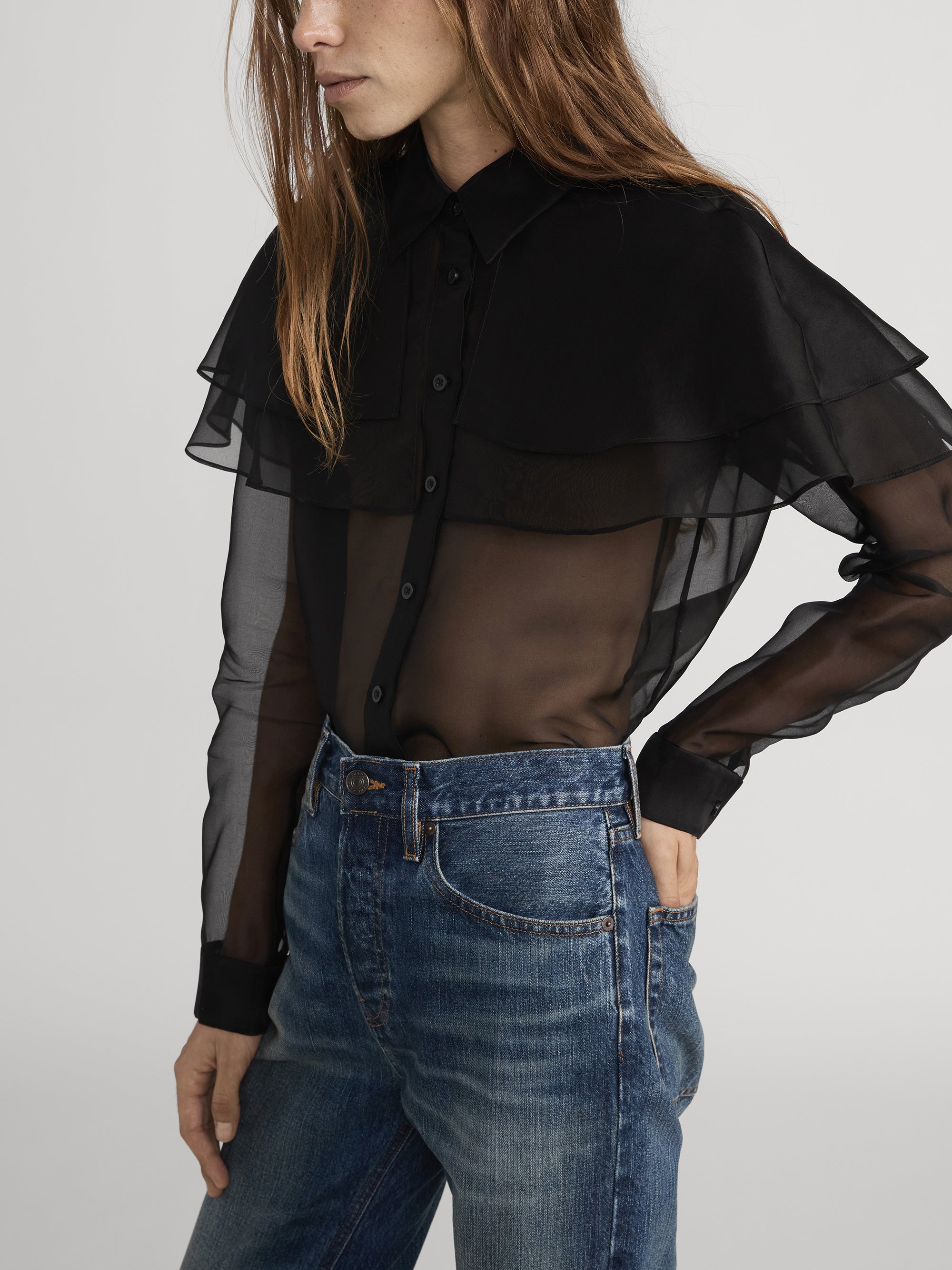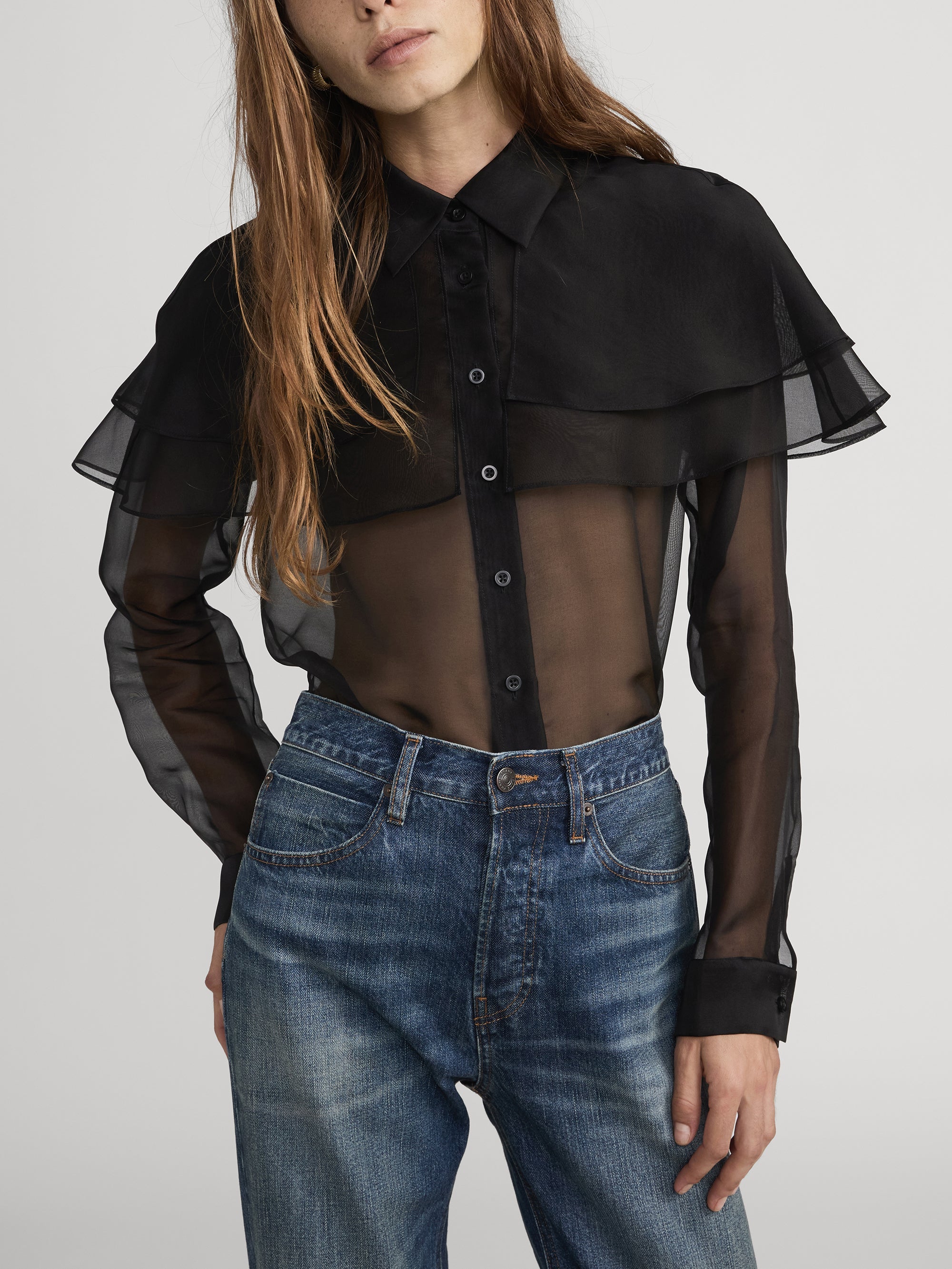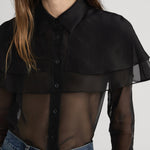 Cut from structured organza silk, this long-sleeve top is finished with a tiered attached cape that creates architectural lines and sculptural volume.