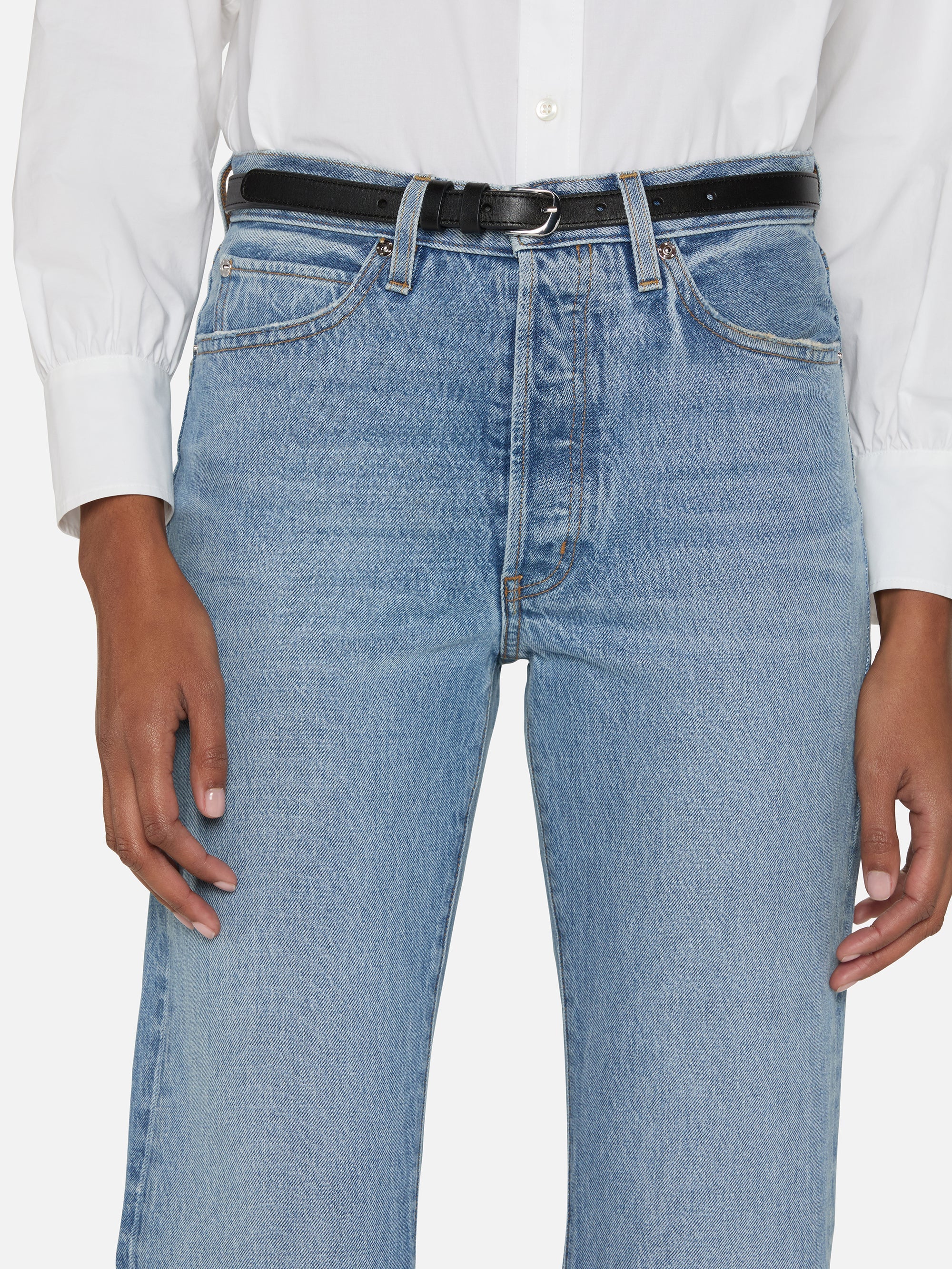 For the laid-back LA girl in us all, this jean sits just above the hip and breaks into a relaxed, wide-leg flare. Tailored to a petite-friendly inseam, The Pixie Lax has a spacious fit that's defined by rigid denim for structure and a raw, frayed hem for an authentic vintage feel.